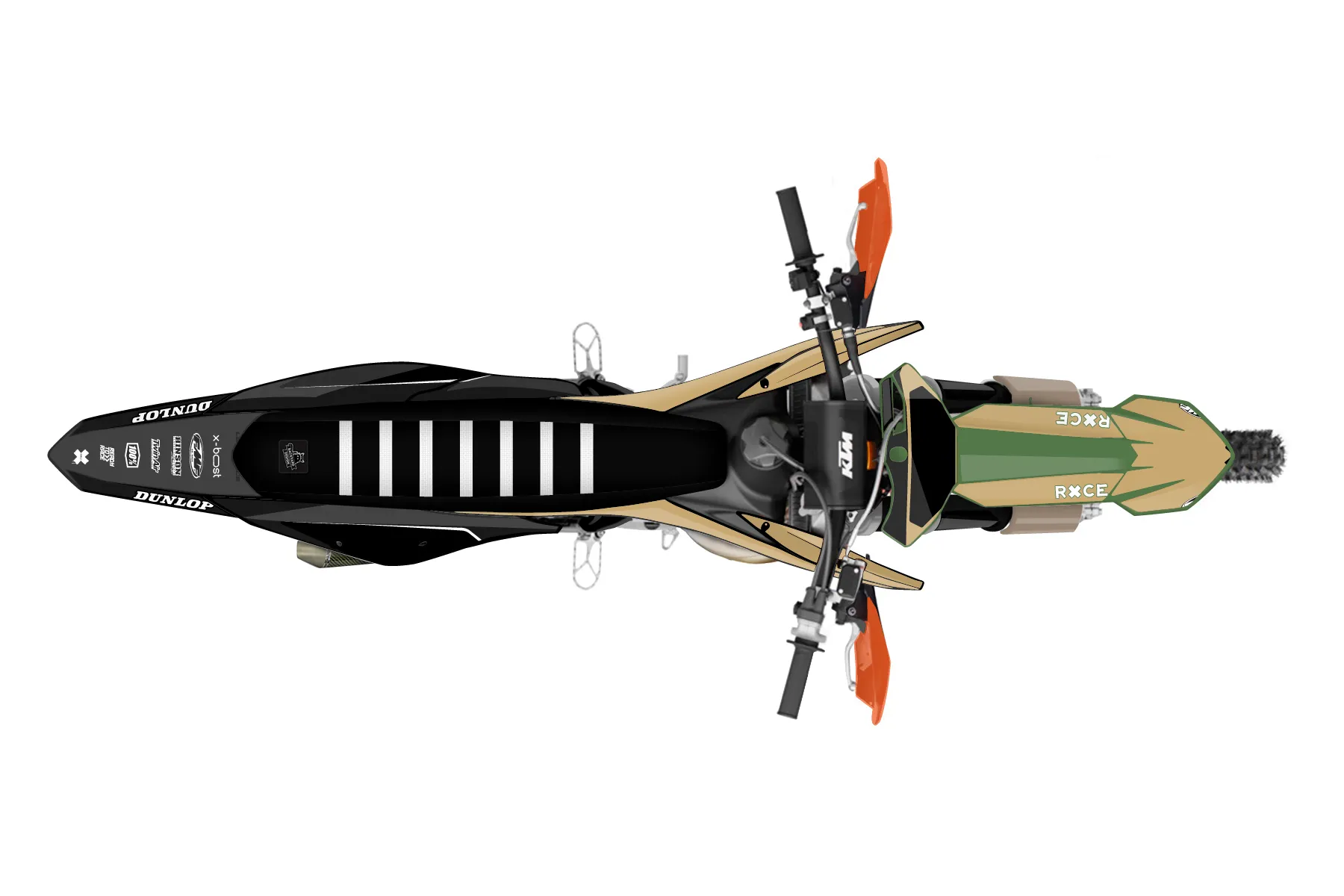 «Thrive» — готовый комплект графики серии Flow для KTM Offroad Graphic Kit KTM XC 250 2019. В комплекте: графика на бак и боковые облицовки, крылья (переднее и заднее), передний щиток, номерные таблички, защита вилки. Материал: ПВХ-винил 80 мкр с холодной ламинацией 300 мкр, общая толщина 380 мкр; покрытие глянцевое или матовое на выбор. Устойчив к UV-излучению, воде, бензину и мойке высокого давления. Клей акриловый на сольвентной основе — постоянный, для гибких пластиков. На простых поверхностях монтируется без нагрева; для сложных изгибов рекомендуем фен. Этот пресет можно заказать как есть или взять за основу в конструкторе: поменять цвета, добавить стартовый номер и свой бренд. Производство — 3–5 рабочих дней, доставка по России СДЭКом или Почтой, по СНГ — курьерскими службами.