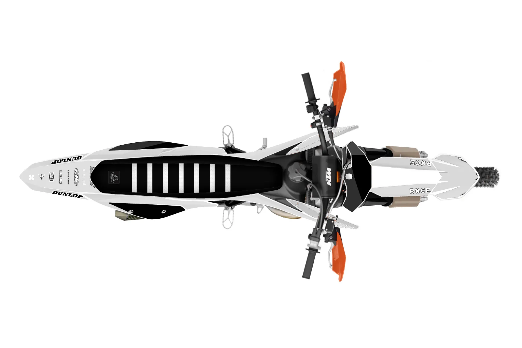 «Vibes» — готовый комплект графики серии Flow для KTM Offroad Graphic Kit KTM XC 250 2019. В комплекте: графика на бак и боковые облицовки, крылья (переднее и заднее), передний щиток, номерные таблички, защита вилки. Материал: ПВХ-винил 80 мкр с холодной ламинацией 300 мкр, общая толщина 380 мкр; покрытие глянцевое или матовое на выбор. Устойчив к UV-излучению, воде, бензину и мойке высокого давления. Клей акриловый на сольвентной основе — постоянный, для гибких пластиков. На простых поверхностях монтируется без нагрева; для сложных изгибов рекомендуем фен. Этот пресет можно заказать как есть или взять за основу в конструкторе: поменять цвета, добавить стартовый номер и свой бренд. Производство — 3–5 рабочих дней, доставка по России СДЭКом или Почтой, по СНГ — курьерскими службами.