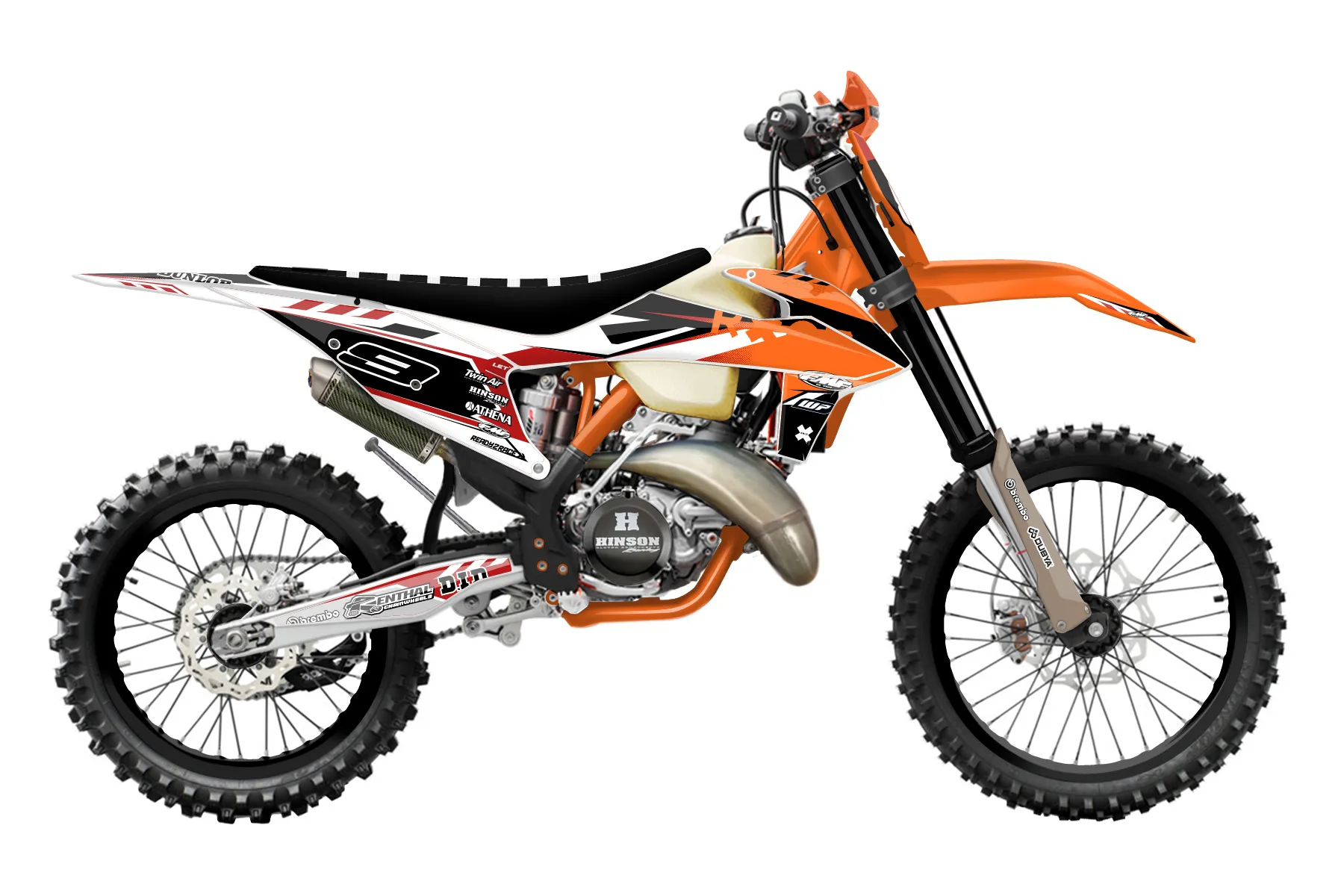 «Dude» — готовый комплект графики серии Maverick для KTM Offroad Graphic Kit KTM XC 250 2019. В комплекте: графика на бак и боковые облицовки, крылья (переднее и заднее), передний щиток, номерные таблички, защита вилки. Материал: ПВХ-винил 80 мкр с холодной ламинацией 300 мкр, общая толщина 380 мкр; покрытие глянцевое или матовое на выбор. Устойчив к UV-излучению, воде, бензину и мойке высокого давления. Клей акриловый на сольвентной основе — постоянный, для гибких пластиков. На простых поверхностях монтируется без нагрева; для сложных изгибов рекомендуем фен. Этот пресет можно заказать как есть или взять за основу в конструкторе: поменять цвета, добавить стартовый номер и свой бренд. Производство — 3–5 рабочих дней, доставка по России СДЭКом или Почтой, по СНГ — курьерскими службами.