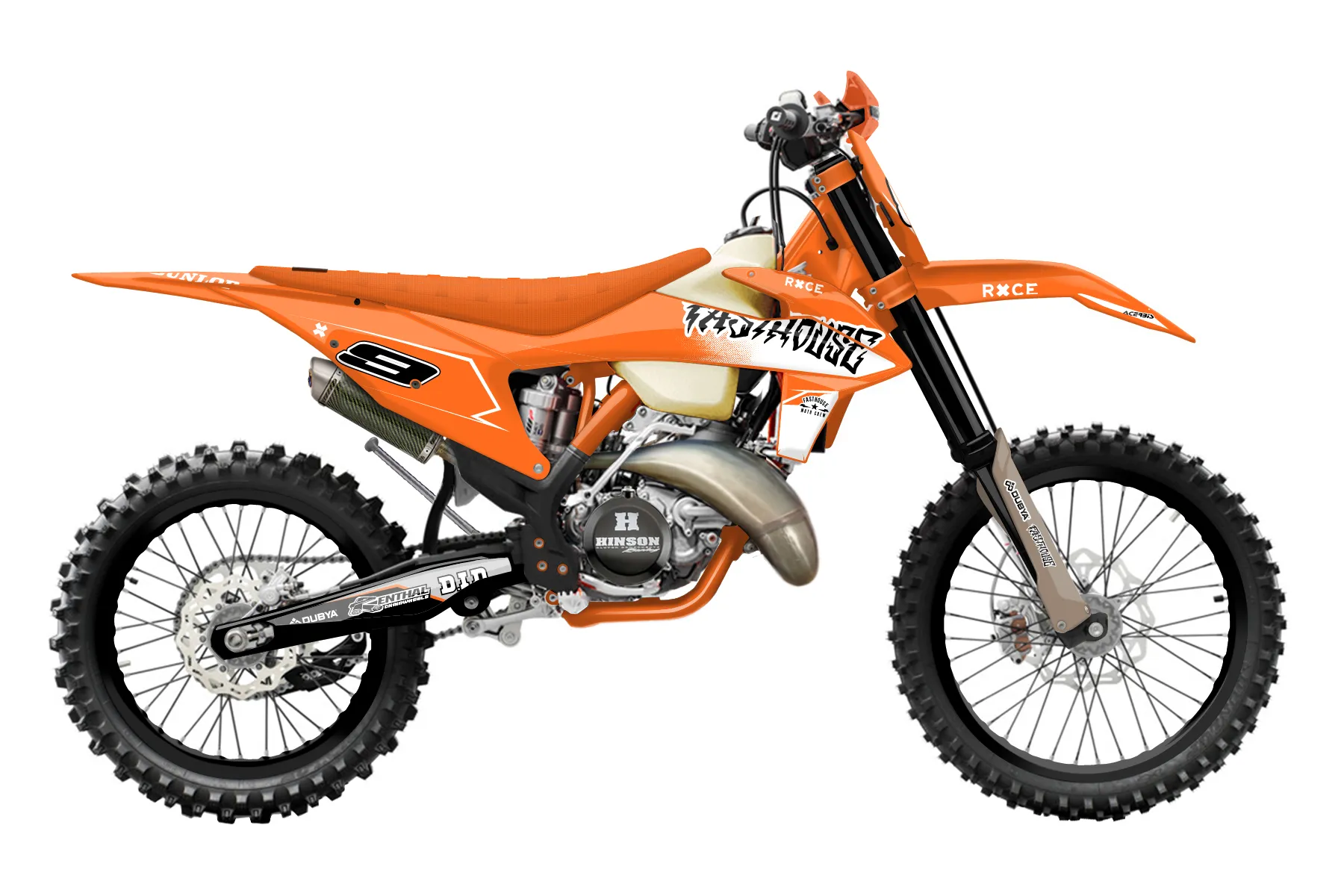 «Industry» — готовый комплект графики серии Maverick для KTM Offroad Graphic Kit KTM XC 250 2019. В комплекте: графика на бак и боковые облицовки, крылья (переднее и заднее), передний щиток, номерные таблички, защита вилки. Материал: ПВХ-винил 80 мкр с холодной ламинацией 300 мкр, общая толщина 380 мкр; покрытие глянцевое или матовое на выбор. Устойчив к UV-излучению, воде, бензину и мойке высокого давления. Клей акриловый на сольвентной основе — постоянный, для гибких пластиков. На простых поверхностях монтируется без нагрева; для сложных изгибов рекомендуем фен. Этот пресет можно заказать как есть или взять за основу в конструкторе: поменять цвета, добавить стартовый номер и свой бренд. Производство — 3–5 рабочих дней, доставка по России СДЭКом или Почтой, по СНГ — курьерскими службами.