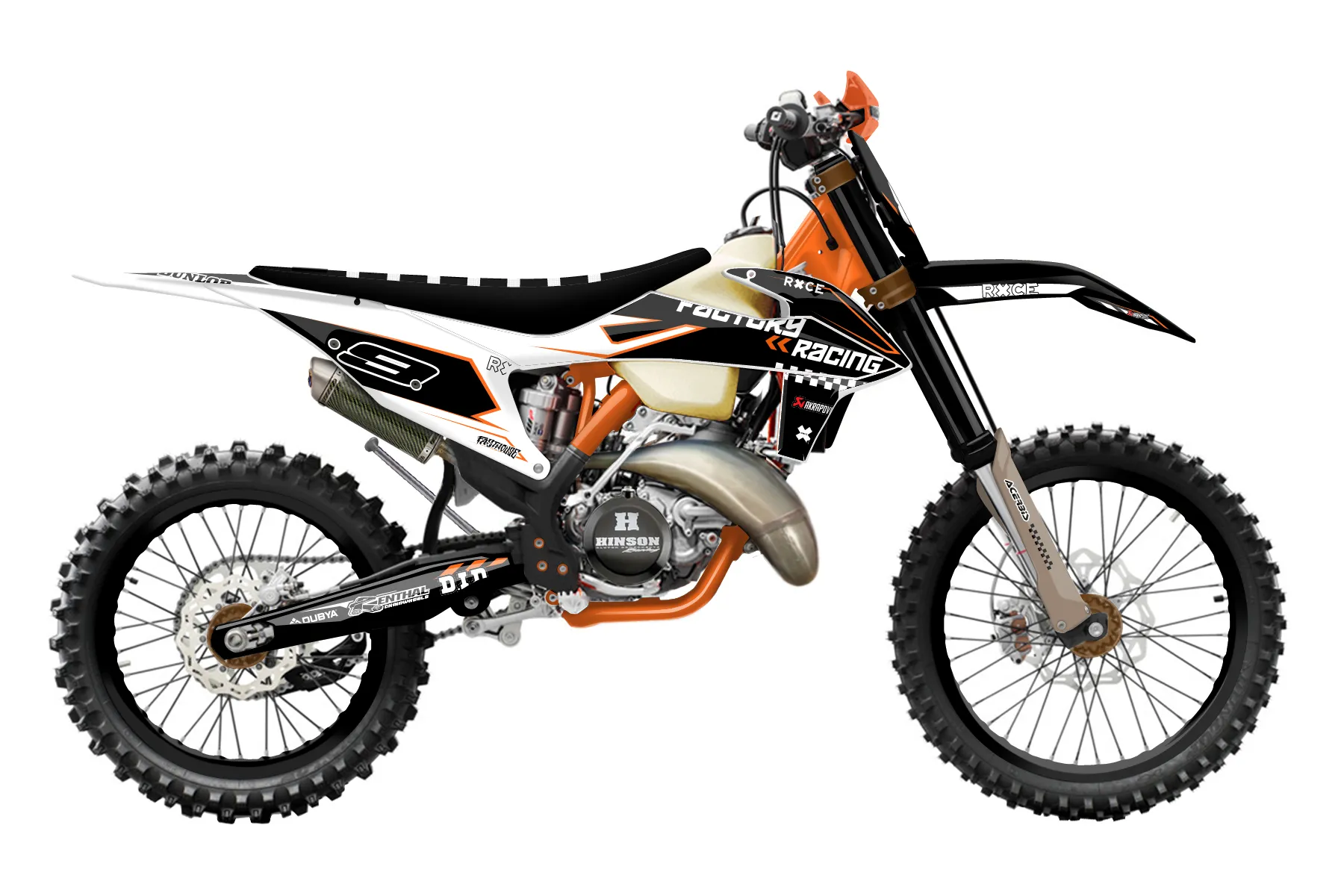 «Sick» — готовый комплект графики серии Maverick для KTM Offroad Graphic Kit KTM XC 250 2019. В комплекте: графика на бак и боковые облицовки, крылья (переднее и заднее), передний щиток, номерные таблички, защита вилки. Материал: ПВХ-винил 80 мкр с холодной ламинацией 300 мкр, общая толщина 380 мкр; покрытие глянцевое или матовое на выбор. Устойчив к UV-излучению, воде, бензину и мойке высокого давления. Клей акриловый на сольвентной основе — постоянный, для гибких пластиков. На простых поверхностях монтируется без нагрева; для сложных изгибов рекомендуем фен. Этот пресет можно заказать как есть или взять за основу в конструкторе: поменять цвета, добавить стартовый номер и свой бренд. Производство — 3–5 рабочих дней, доставка по России СДЭКом или Почтой, по СНГ — курьерскими службами.