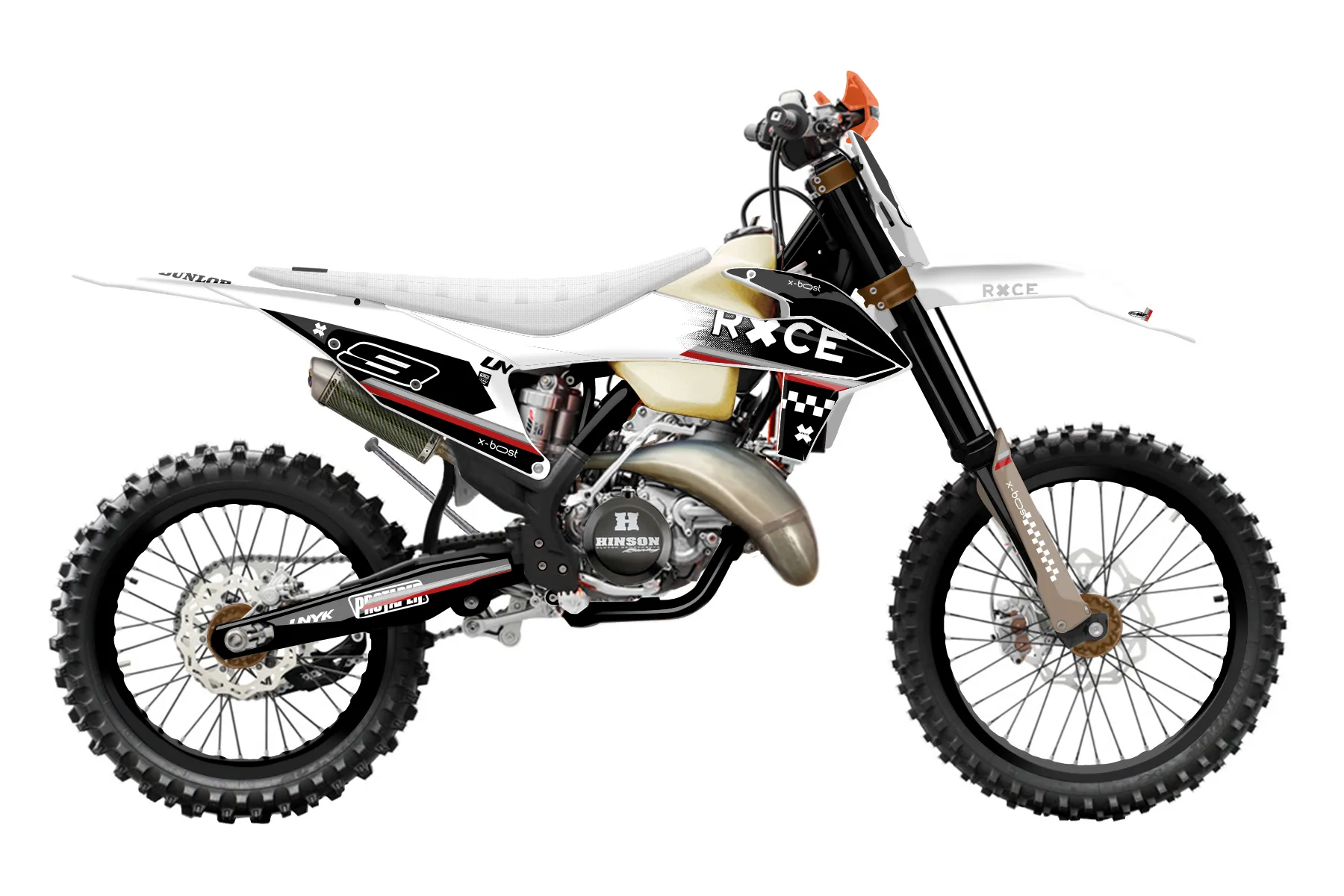 «Speedy» — готовый комплект графики серии Maverick для KTM Offroad Graphic Kit KTM XC 250 2019. В комплекте: графика на бак и боковые облицовки, крылья (переднее и заднее), передний щиток, номерные таблички, защита вилки. Материал: ПВХ-винил 80 мкр с холодной ламинацией 300 мкр, общая толщина 380 мкр; покрытие глянцевое или матовое на выбор. Устойчив к UV-излучению, воде, бензину и мойке высокого давления. Клей акриловый на сольвентной основе — постоянный, для гибких пластиков. На простых поверхностях монтируется без нагрева; для сложных изгибов рекомендуем фен. Этот пресет можно заказать как есть или взять за основу в конструкторе: поменять цвета, добавить стартовый номер и свой бренд. Производство — 3–5 рабочих дней, доставка по России СДЭКом или Почтой, по СНГ — курьерскими службами.