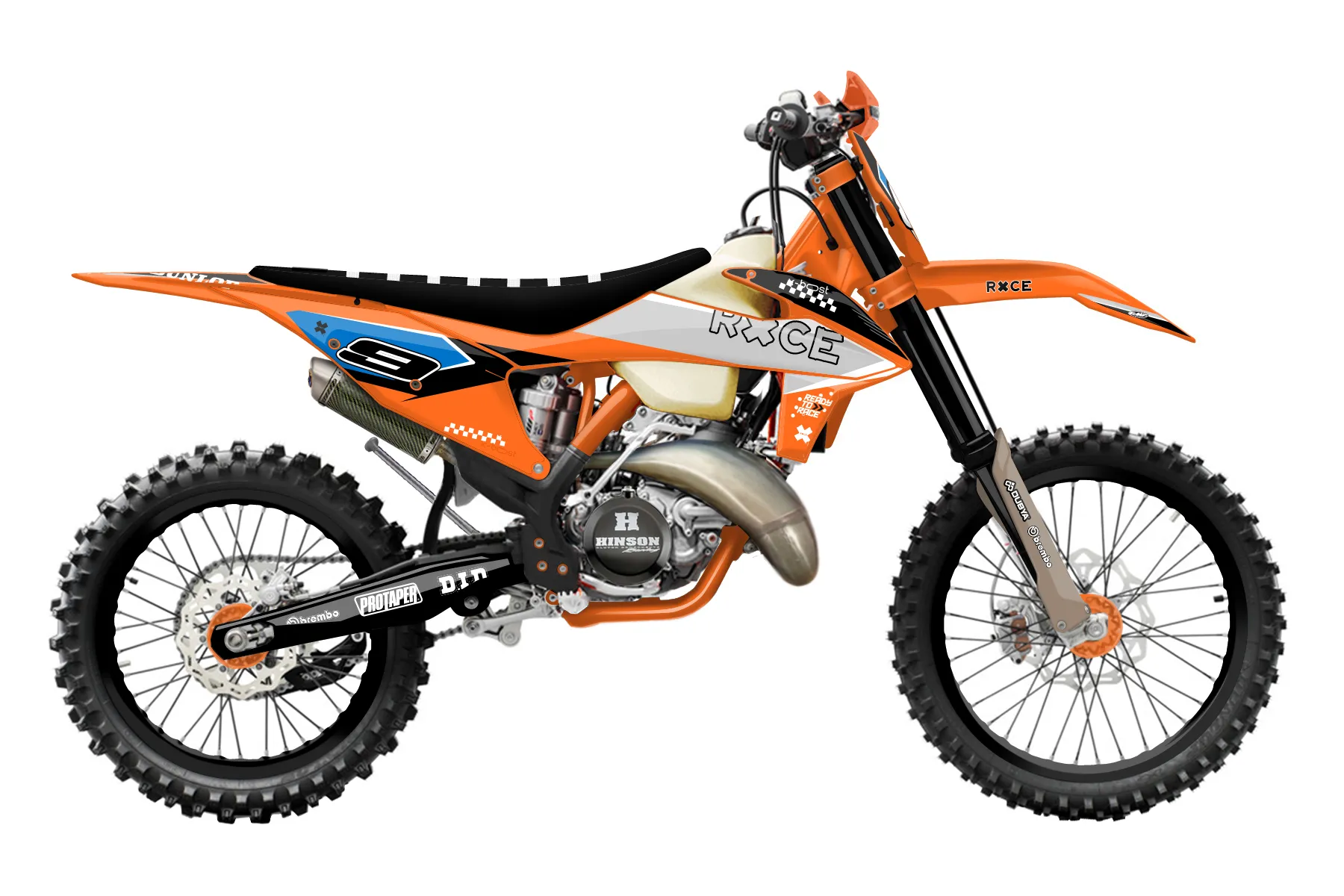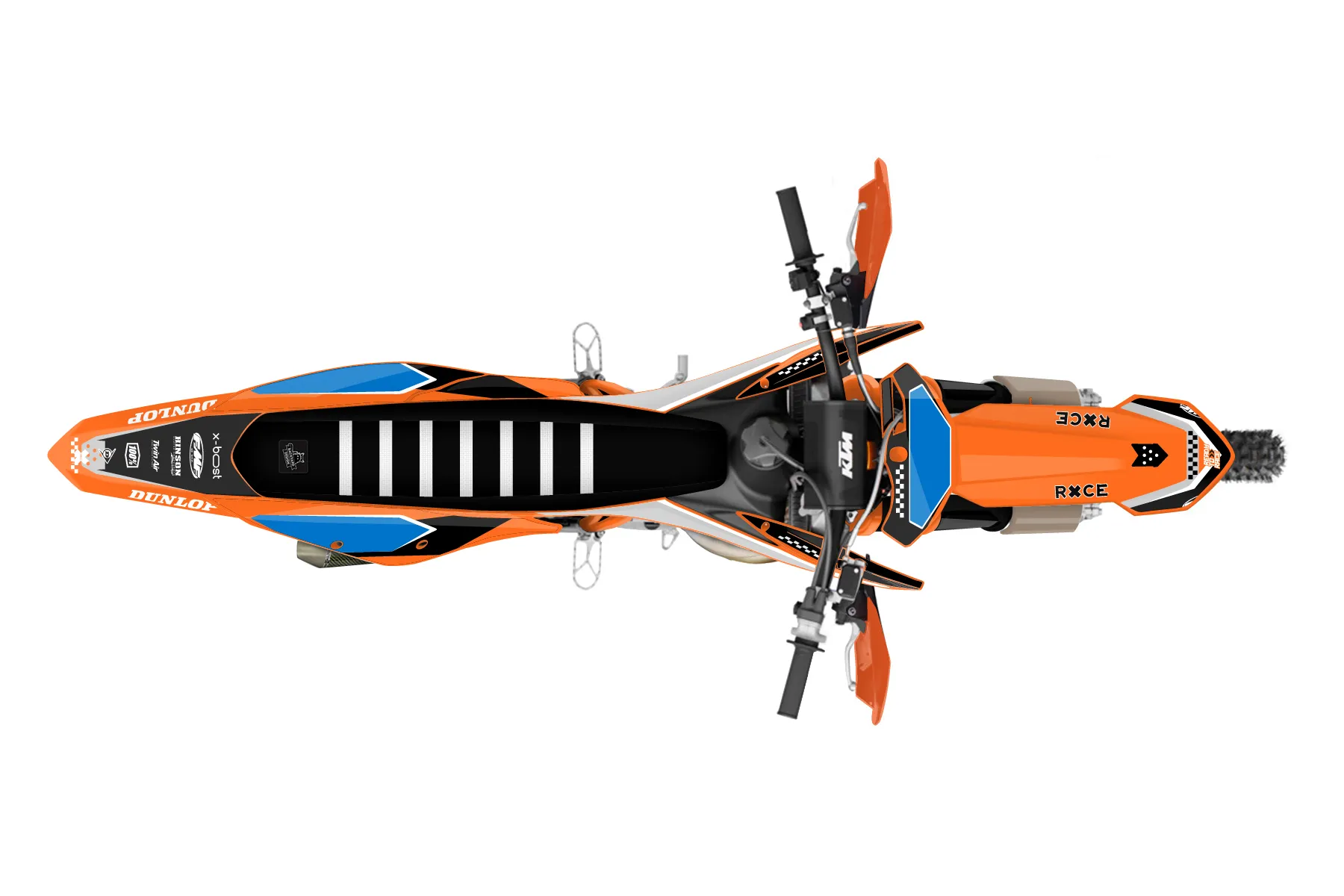 «Clean» — готовый комплект графики серии Staple для KTM Offroad Graphic Kit KTM XC 250 2019. В комплекте: графика на бак и боковые облицовки, крылья (переднее и заднее), передний щиток, номерные таблички, защита вилки. Материал: ПВХ-винил 80 мкр с холодной ламинацией 300 мкр, общая толщина 380 мкр; покрытие глянцевое или матовое на выбор. Устойчив к UV-излучению, воде, бензину и мойке высокого давления. Клей акриловый на сольвентной основе — постоянный, для гибких пластиков. На простых поверхностях монтируется без нагрева; для сложных изгибов рекомендуем фен. Этот пресет можно заказать как есть или взять за основу в конструкторе: поменять цвета, добавить стартовый номер и свой бренд. Производство — 3–5 рабочих дней, доставка по России СДЭКом или Почтой, по СНГ — курьерскими службами.