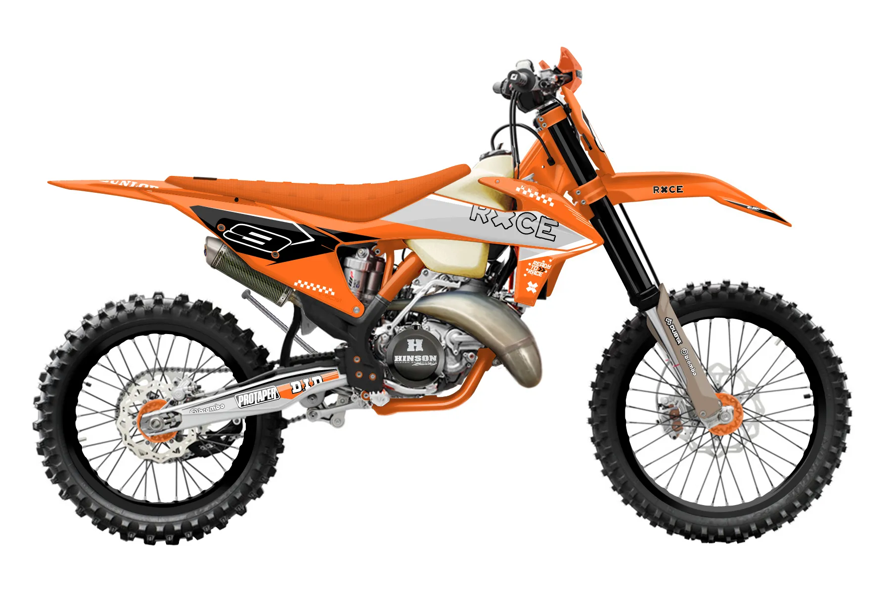 «Data» — готовый комплект графики серии Staple для KTM Offroad Graphic Kit KTM XC 250 2019. В комплекте: графика на бак и боковые облицовки, крылья (переднее и заднее), передний щиток, номерные таблички, защита вилки. Материал: ПВХ-винил 80 мкр с холодной ламинацией 300 мкр, общая толщина 380 мкр; покрытие глянцевое или матовое на выбор. Устойчив к UV-излучению, воде, бензину и мойке высокого давления. Клей акриловый на сольвентной основе — постоянный, для гибких пластиков. На простых поверхностях монтируется без нагрева; для сложных изгибов рекомендуем фен. Этот пресет можно заказать как есть или взять за основу в конструкторе: поменять цвета, добавить стартовый номер и свой бренд. Производство — 3–5 рабочих дней, доставка по России СДЭКом или Почтой, по СНГ — курьерскими службами.