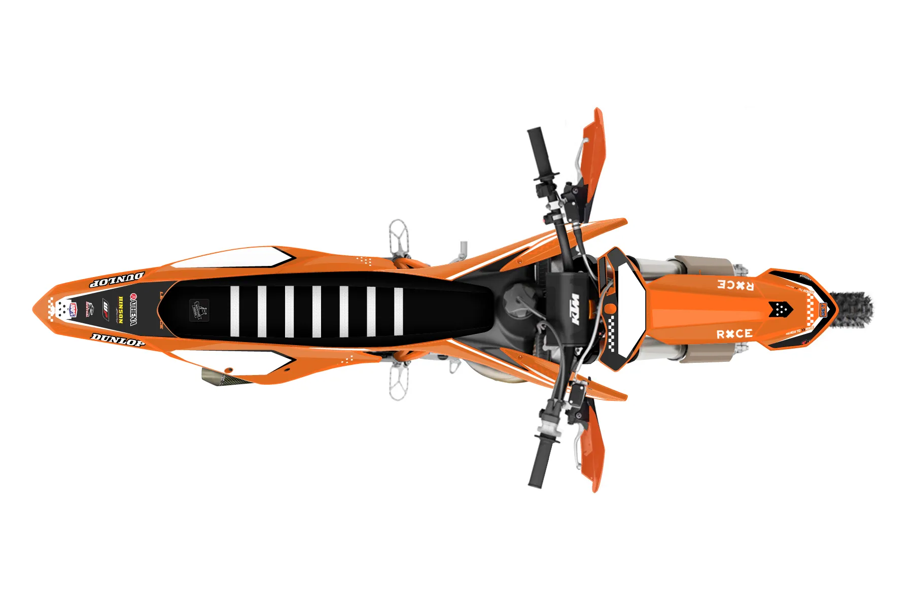 «Raw» — готовый комплект графики серии Staple для KTM Offroad Graphic Kit KTM XC 250 2019. В комплекте: графика на бак и боковые облицовки, крылья (переднее и заднее), передний щиток, номерные таблички, защита вилки. Материал: ПВХ-винил 80 мкр с холодной ламинацией 300 мкр, общая толщина 380 мкр; покрытие глянцевое или матовое на выбор. Устойчив к UV-излучению, воде, бензину и мойке высокого давления. Клей акриловый на сольвентной основе — постоянный, для гибких пластиков. На простых поверхностях монтируется без нагрева; для сложных изгибов рекомендуем фен. Этот пресет можно заказать как есть или взять за основу в конструкторе: поменять цвета, добавить стартовый номер и свой бренд. Производство — 3–5 рабочих дней, доставка по России СДЭКом или Почтой, по СНГ — курьерскими службами.
