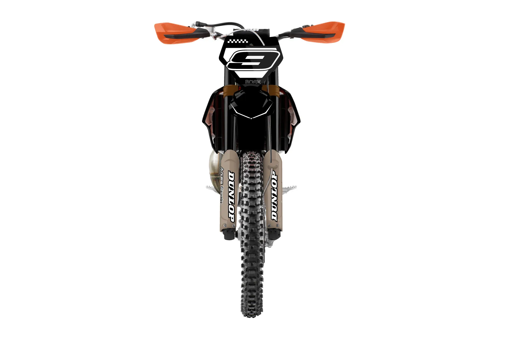 «Ryder» — готовый комплект графики серии Staple для KTM Offroad Graphic Kit KTM XC 250 2019. В комплекте: графика на бак и боковые облицовки, крылья (переднее и заднее), передний щиток, номерные таблички, защита вилки. Материал: ПВХ-винил 80 мкр с холодной ламинацией 300 мкр, общая толщина 380 мкр; покрытие глянцевое или матовое на выбор. Устойчив к UV-излучению, воде, бензину и мойке высокого давления. Клей акриловый на сольвентной основе — постоянный, для гибких пластиков. На простых поверхностях монтируется без нагрева; для сложных изгибов рекомендуем фен. Этот пресет можно заказать как есть или взять за основу в конструкторе: поменять цвета, добавить стартовый номер и свой бренд. Производство — 3–5 рабочих дней, доставка по России СДЭКом или Почтой, по СНГ — курьерскими службами.