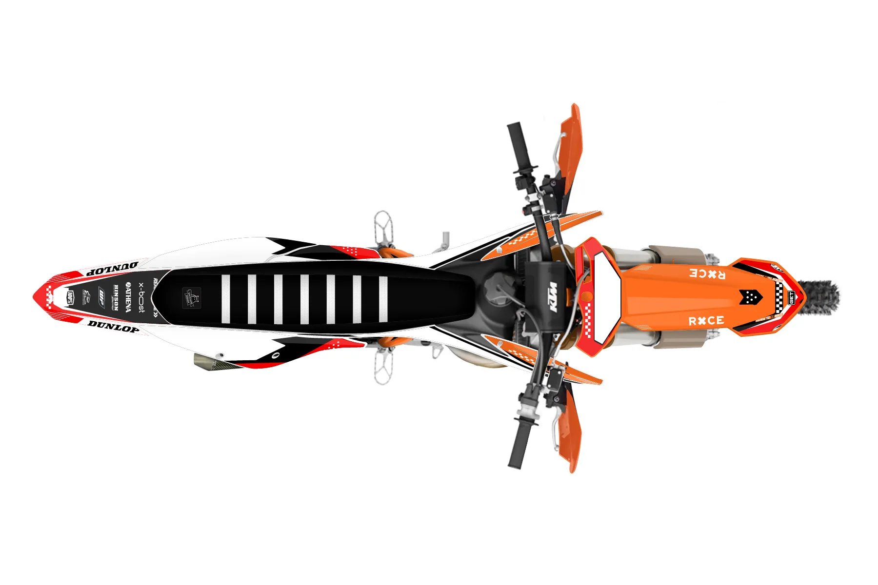 «Spirit» — готовый комплект графики серии Staple для KTM Offroad Graphic Kit KTM XC 250 2019. В комплекте: графика на бак и боковые облицовки, крылья (переднее и заднее), передний щиток, номерные таблички, защита вилки. Материал: ПВХ-винил 80 мкр с холодной ламинацией 300 мкр, общая толщина 380 мкр; покрытие глянцевое или матовое на выбор. Устойчив к UV-излучению, воде, бензину и мойке высокого давления. Клей акриловый на сольвентной основе — постоянный, для гибких пластиков. На простых поверхностях монтируется без нагрева; для сложных изгибов рекомендуем фен. Этот пресет можно заказать как есть или взять за основу в конструкторе: поменять цвета, добавить стартовый номер и свой бренд. Производство — 3–5 рабочих дней, доставка по России СДЭКом или Почтой, по СНГ — курьерскими службами.
