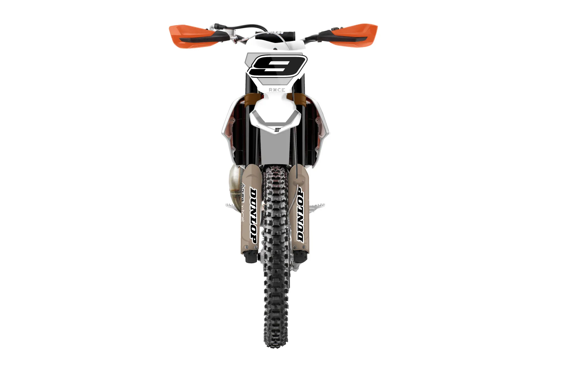 «Stance» — готовый комплект графики серии Staple для KTM Offroad Graphic Kit KTM XC 250 2019. В комплекте: графика на бак и боковые облицовки, крылья (переднее и заднее), передний щиток, номерные таблички, защита вилки. Материал: ПВХ-винил 80 мкр с холодной ламинацией 300 мкр, общая толщина 380 мкр; покрытие глянцевое или матовое на выбор. Устойчив к UV-излучению, воде, бензину и мойке высокого давления. Клей акриловый на сольвентной основе — постоянный, для гибких пластиков. На простых поверхностях монтируется без нагрева; для сложных изгибов рекомендуем фен. Этот пресет можно заказать как есть или взять за основу в конструкторе: поменять цвета, добавить стартовый номер и свой бренд. Производство — 3–5 рабочих дней, доставка по России СДЭКом или Почтой, по СНГ — курьерскими службами.
