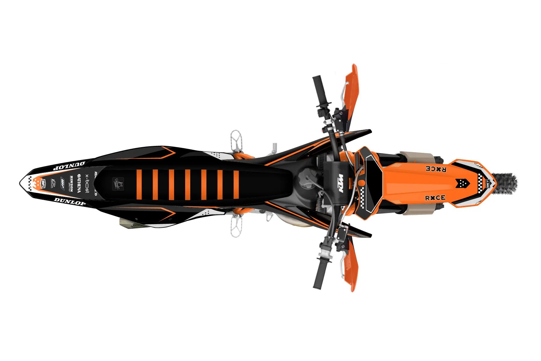 «Zebra» — готовый комплект графики серии Staple для KTM Offroad Graphic Kit KTM XC 250 2019. В комплекте: графика на бак и боковые облицовки, крылья (переднее и заднее), передний щиток, номерные таблички, защита вилки. Материал: ПВХ-винил 80 мкр с холодной ламинацией 300 мкр, общая толщина 380 мкр; покрытие глянцевое или матовое на выбор. Устойчив к UV-излучению, воде, бензину и мойке высокого давления. Клей акриловый на сольвентной основе — постоянный, для гибких пластиков. На простых поверхностях монтируется без нагрева; для сложных изгибов рекомендуем фен. Этот пресет можно заказать как есть или взять за основу в конструкторе: поменять цвета, добавить стартовый номер и свой бренд. Производство — 3–5 рабочих дней, доставка по России СДЭКом или Почтой, по СНГ — курьерскими службами.