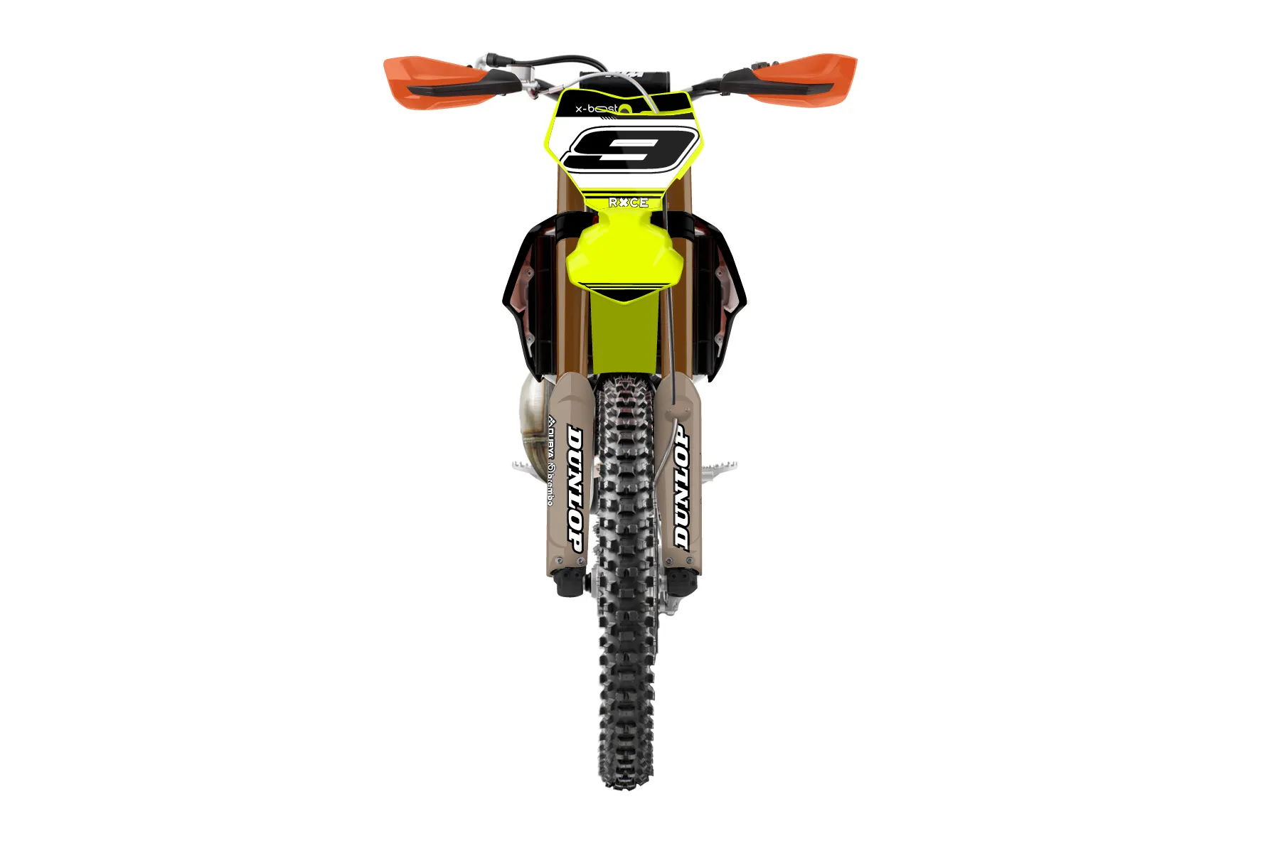 «Ride Neon» — готовый комплект графики серии Untucked для KTM Offroad Graphic Kit KTM XC 250 2019. В комплекте: графика на бак и боковые облицовки, крылья (переднее и заднее), передний щиток, номерные таблички, защита вилки. Материал: ПВХ-винил 80 мкр с холодной ламинацией 300 мкр, общая толщина 380 мкр; покрытие глянцевое или матовое на выбор. Устойчив к UV-излучению, воде, бензину и мойке высокого давления. Клей акриловый на сольвентной основе — постоянный, для гибких пластиков. На простых поверхностях монтируется без нагрева; для сложных изгибов рекомендуем фен. Этот пресет можно заказать как есть или взять за основу в конструкторе: поменять цвета, добавить стартовый номер и свой бренд. Производство — 3–5 рабочих дней, доставка по России СДЭКом или Почтой, по СНГ — курьерскими службами.