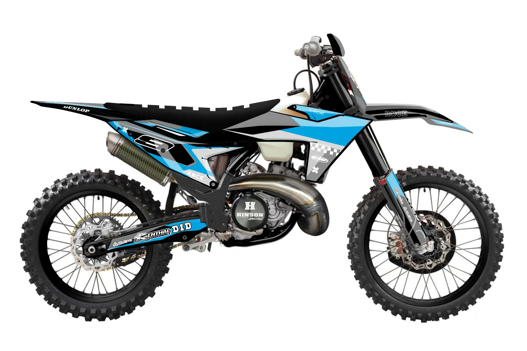 «CustomDesign» — готовый комплект графики серии Flow для KTM Offroad Graphic Kit KTM XC 250 2023. В комплекте: графика на бак и боковые облицовки, крылья (переднее и заднее), передний щиток, номерные таблички, защита вилки. Материал: ПВХ-винил 80 мкр с холодной ламинацией 300 мкр, общая толщина 380 мкр; покрытие глянцевое или матовое на выбор. Устойчив к UV-излучению, воде, бензину и мойке высокого давления. Клей акриловый на сольвентной основе — постоянный, для гибких пластиков. На простых поверхностях монтируется без нагрева; для сложных изгибов рекомендуем фен. Этот пресет можно заказать как есть или взять за основу в конструкторе: поменять цвета, добавить стартовый номер и свой бренд. Производство — 3–5 рабочих дней, доставка по России СДЭКом или Почтой, по СНГ — курьерскими службами.
