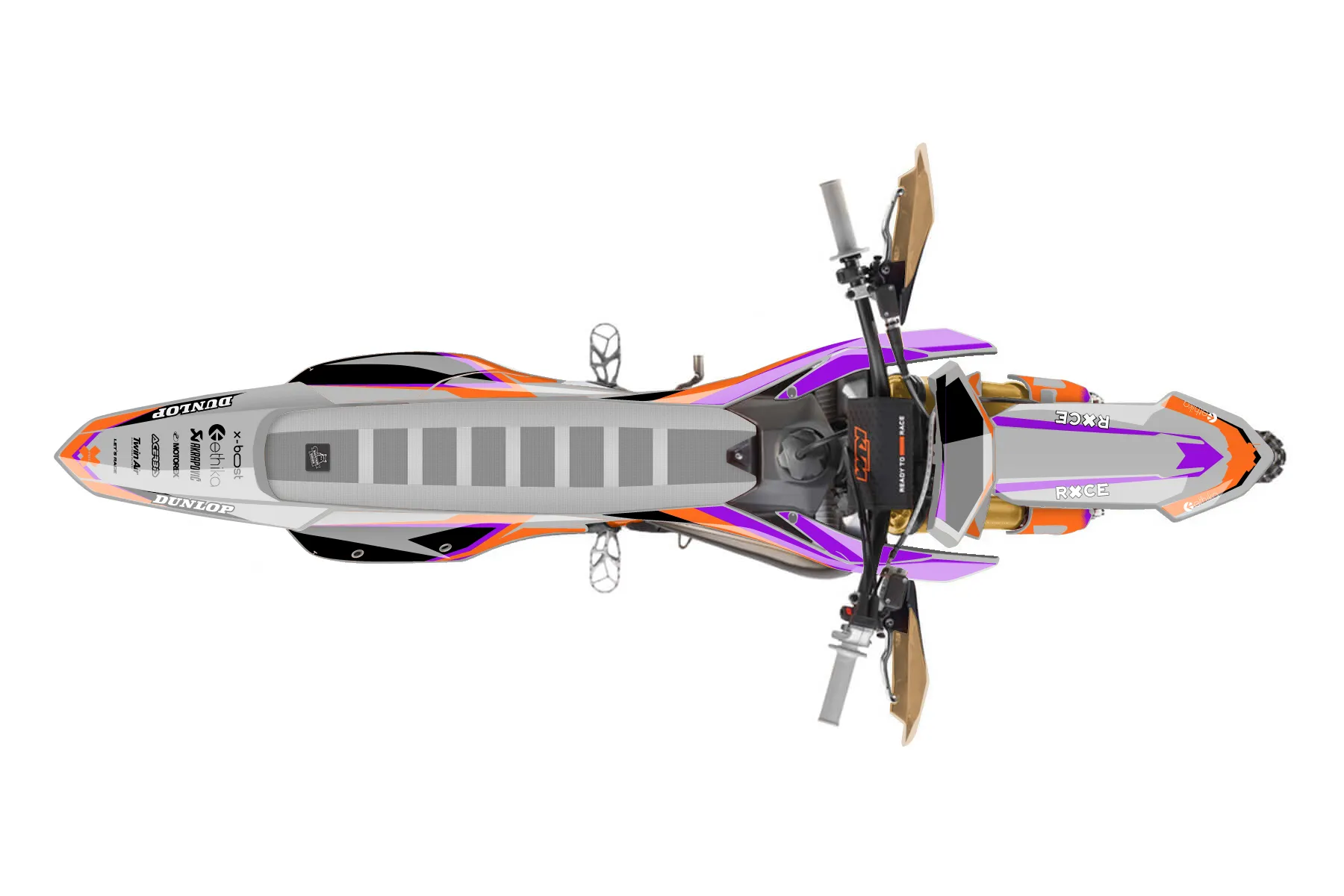 «Emphatic» — готовый комплект графики серии Fusion для KTM Offroad Graphic Kit KTM XC 250 2023. В комплекте: графика на бак и боковые облицовки, крылья (переднее и заднее), передний щиток, номерные таблички, защита вилки. Материал: ПВХ-винил 80 мкр с холодной ламинацией 300 мкр, общая толщина 380 мкр; покрытие глянцевое или матовое на выбор. Устойчив к UV-излучению, воде, бензину и мойке высокого давления. Клей акриловый на сольвентной основе — постоянный, для гибких пластиков. На простых поверхностях монтируется без нагрева; для сложных изгибов рекомендуем фен. Этот пресет можно заказать как есть или взять за основу в конструкторе: поменять цвета, добавить стартовый номер и свой бренд. Производство — 3–5 рабочих дней, доставка по России СДЭКом или Почтой, по СНГ — курьерскими службами.