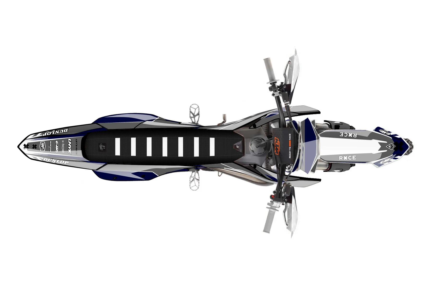«2026 bike» — готовый комплект графики серии Maverick для KTM Offroad Graphic Kit KTM XC 250 2023. В комплекте: графика на бак и боковые облицовки, крылья (переднее и заднее), передний щиток, номерные таблички, защита вилки. Материал: ПВХ-винил 80 мкр с холодной ламинацией 300 мкр, общая толщина 380 мкр; покрытие глянцевое или матовое на выбор. Устойчив к UV-излучению, воде, бензину и мойке высокого давления. Клей акриловый на сольвентной основе — постоянный, для гибких пластиков. На простых поверхностях монтируется без нагрева; для сложных изгибов рекомендуем фен. Этот пресет можно заказать как есть или взять за основу в конструкторе: поменять цвета, добавить стартовый номер и свой бренд. Производство — 3–5 рабочих дней, доставка по России СДЭКом или Почтой, по СНГ — курьерскими службами.