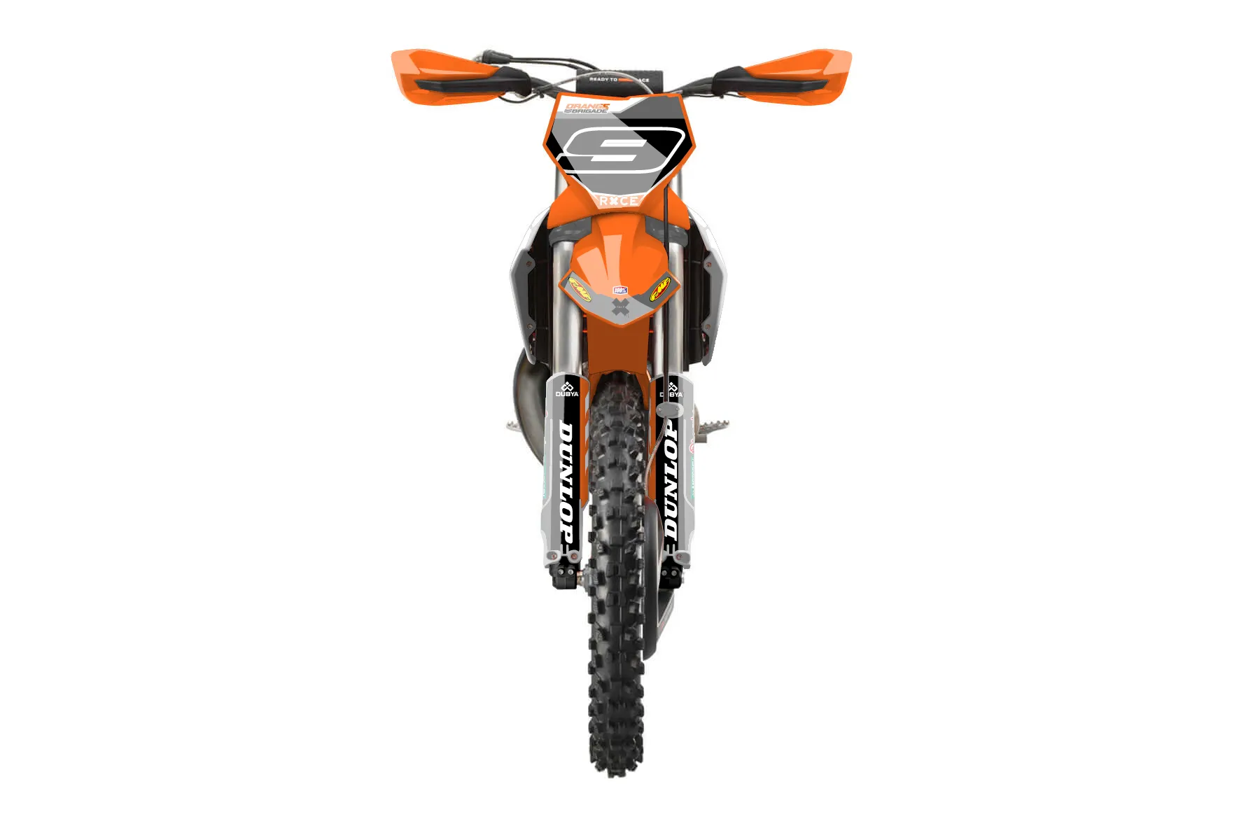 «Eleven» — готовый комплект графики серии Maverick для KTM Offroad Graphic Kit KTM XC 250 2023. В комплекте: графика на бак и боковые облицовки, крылья (переднее и заднее), передний щиток, номерные таблички, защита вилки. Материал: ПВХ-винил 80 мкр с холодной ламинацией 300 мкр, общая толщина 380 мкр; покрытие глянцевое или матовое на выбор. Устойчив к UV-излучению, воде, бензину и мойке высокого давления. Клей акриловый на сольвентной основе — постоянный, для гибких пластиков. На простых поверхностях монтируется без нагрева; для сложных изгибов рекомендуем фен. Этот пресет можно заказать как есть или взять за основу в конструкторе: поменять цвета, добавить стартовый номер и свой бренд. Производство — 3–5 рабочих дней, доставка по России СДЭКом или Почтой, по СНГ — курьерскими службами.