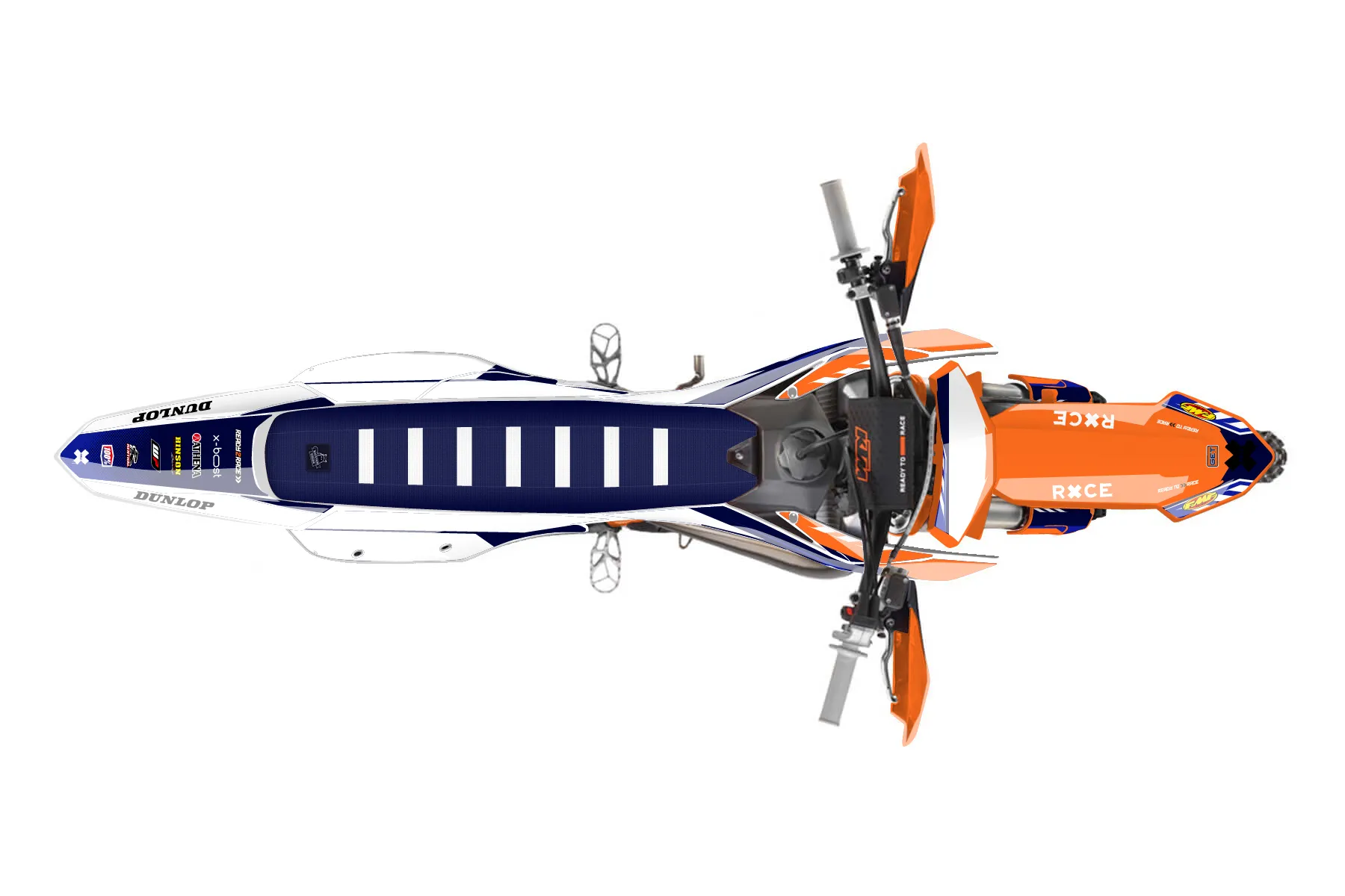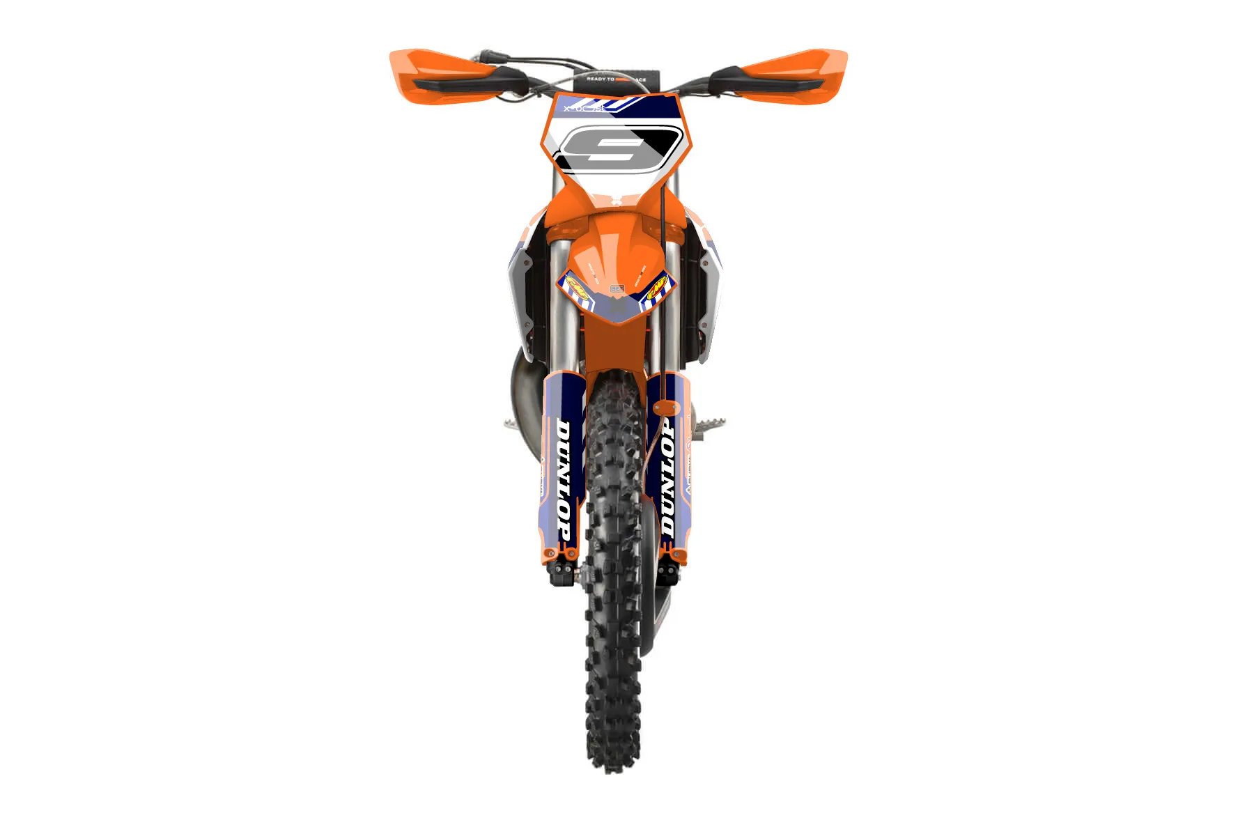 «Fuzion» — готовый комплект графики серии Maverick для KTM Offroad Graphic Kit KTM XC 250 2023. В комплекте: графика на бак и боковые облицовки, крылья (переднее и заднее), передний щиток, номерные таблички, защита вилки. Материал: ПВХ-винил 80 мкр с холодной ламинацией 300 мкр, общая толщина 380 мкр; покрытие глянцевое или матовое на выбор. Устойчив к UV-излучению, воде, бензину и мойке высокого давления. Клей акриловый на сольвентной основе — постоянный, для гибких пластиков. На простых поверхностях монтируется без нагрева; для сложных изгибов рекомендуем фен. Этот пресет можно заказать как есть или взять за основу в конструкторе: поменять цвета, добавить стартовый номер и свой бренд. Производство — 3–5 рабочих дней, доставка по России СДЭКом или Почтой, по СНГ — курьерскими службами.