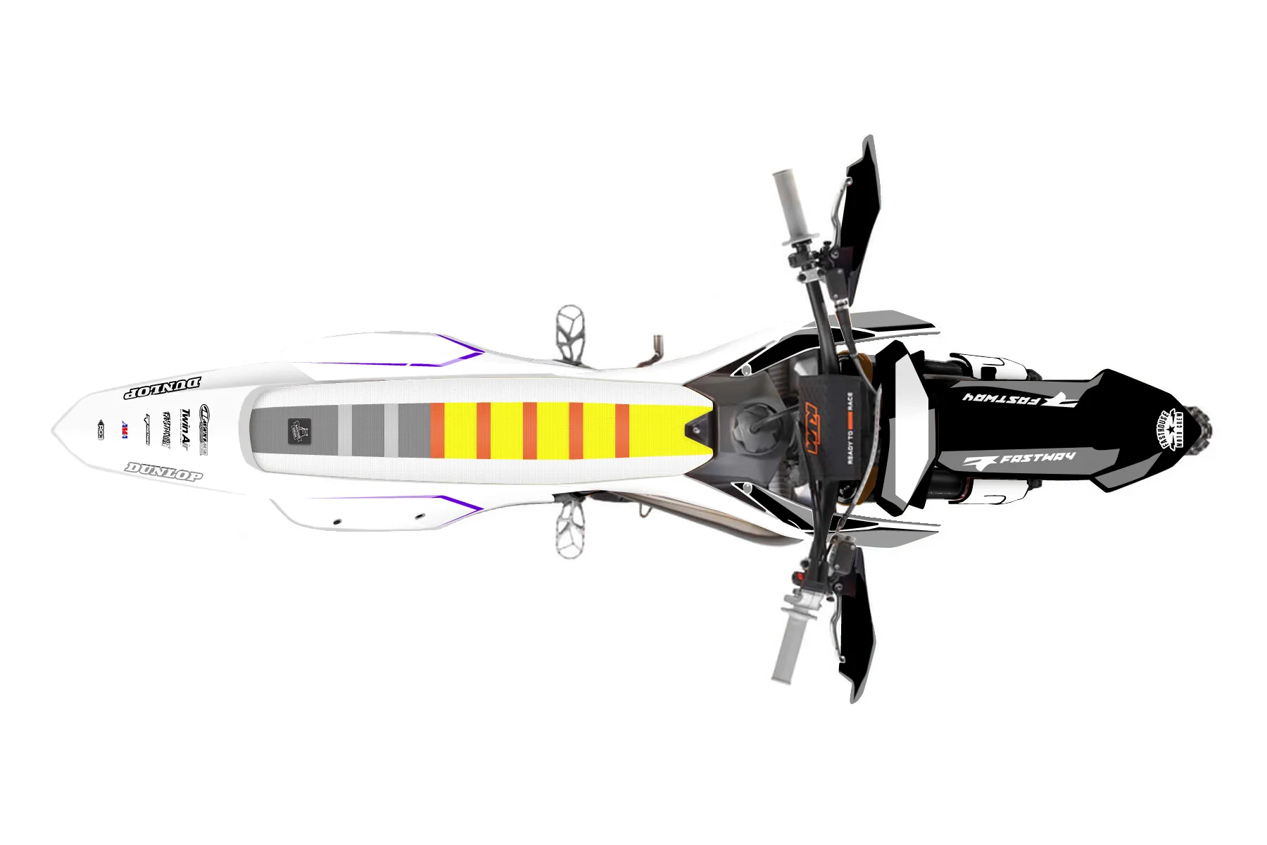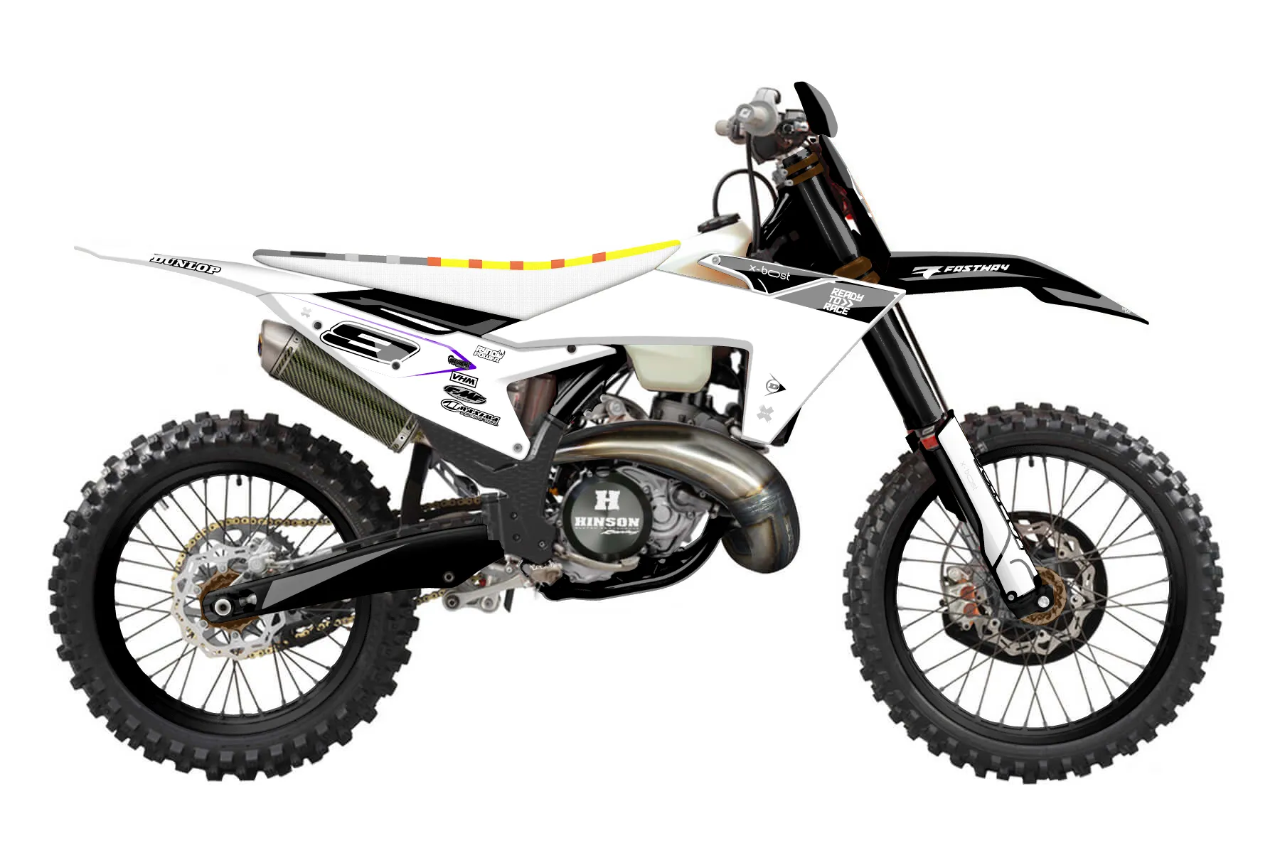 «20» — готовый комплект графики серии Staple для KTM Offroad Graphic Kit KTM XC 250 2023. В комплекте: графика на бак и боковые облицовки, крылья (переднее и заднее), передний щиток, номерные таблички, защита вилки. Материал: ПВХ-винил 80 мкр с холодной ламинацией 300 мкр, общая толщина 380 мкр; покрытие глянцевое или матовое на выбор. Устойчив к UV-излучению, воде, бензину и мойке высокого давления. Клей акриловый на сольвентной основе — постоянный, для гибких пластиков. На простых поверхностях монтируется без нагрева; для сложных изгибов рекомендуем фен. Этот пресет можно заказать как есть или взять за основу в конструкторе: поменять цвета, добавить стартовый номер и свой бренд. Производство — 3–5 рабочих дней, доставка по России СДЭКом или Почтой, по СНГ — курьерскими службами.