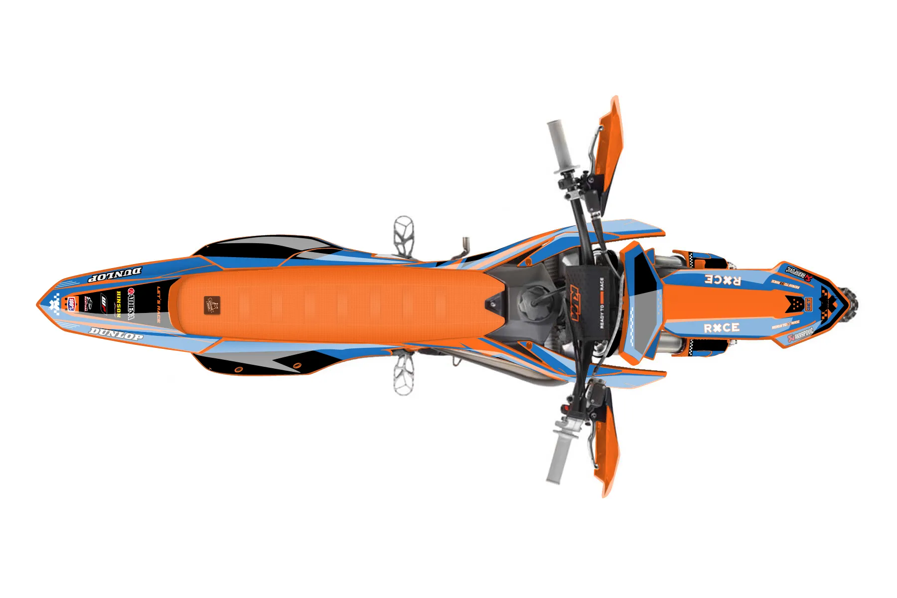 «250xc1» — готовый комплект графики серии Staple для KTM Offroad Graphic Kit KTM XC 250 2023. В комплекте: графика на бак и боковые облицовки, крылья (переднее и заднее), передний щиток, номерные таблички, защита вилки. Материал: ПВХ-винил 80 мкр с холодной ламинацией 300 мкр, общая толщина 380 мкр; покрытие глянцевое или матовое на выбор. Устойчив к UV-излучению, воде, бензину и мойке высокого давления. Клей акриловый на сольвентной основе — постоянный, для гибких пластиков. На простых поверхностях монтируется без нагрева; для сложных изгибов рекомендуем фен. Этот пресет можно заказать как есть или взять за основу в конструкторе: поменять цвета, добавить стартовый номер и свой бренд. Производство — 3–5 рабочих дней, доставка по России СДЭКом или Почтой, по СНГ — курьерскими службами.