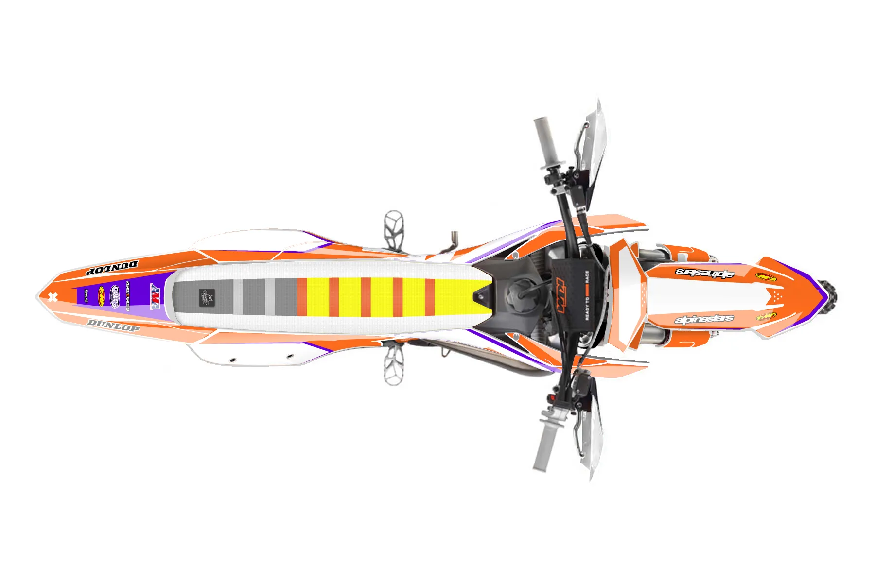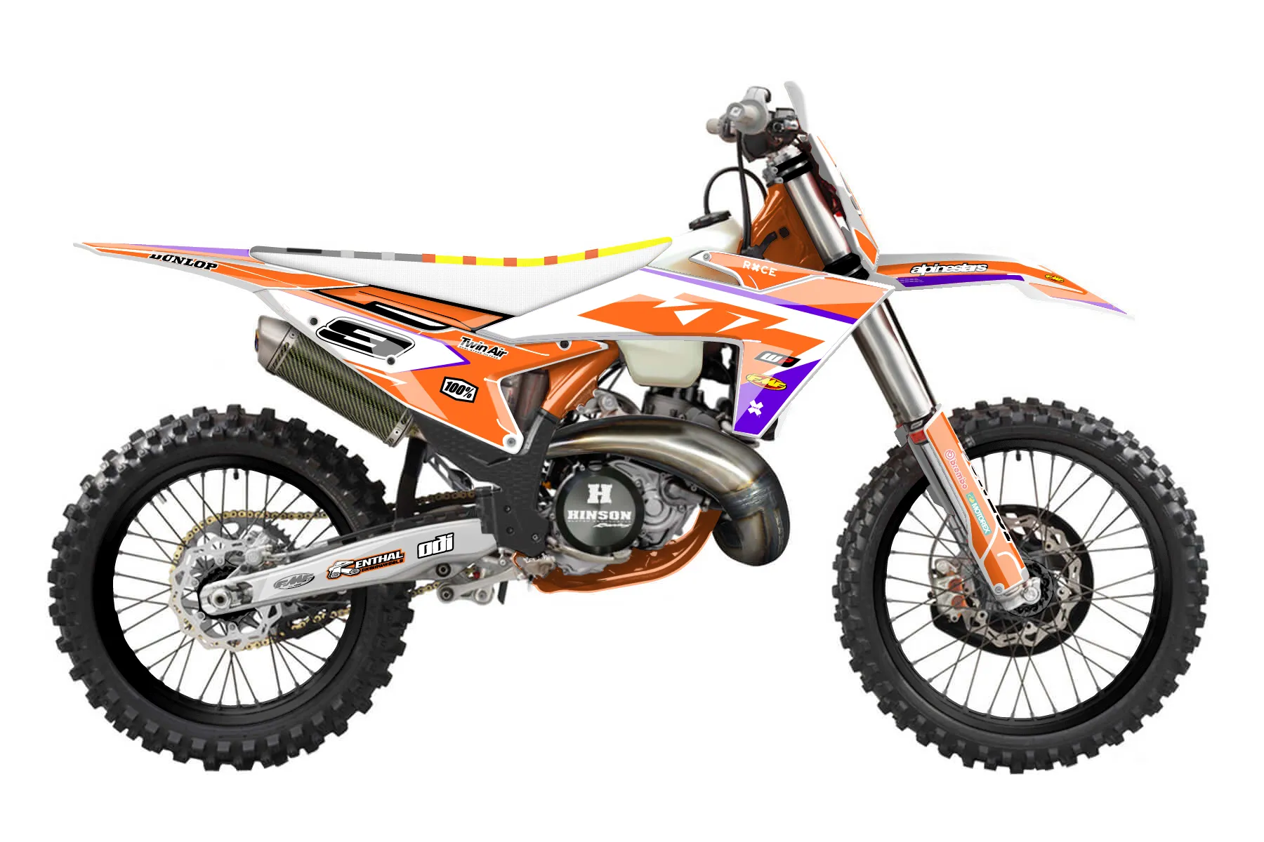 «Chad» — готовый комплект графики серии Staple для KTM Offroad Graphic Kit KTM XC 250 2023. В комплекте: графика на бак и боковые облицовки, крылья (переднее и заднее), передний щиток, номерные таблички, защита вилки. Материал: ПВХ-винил 80 мкр с холодной ламинацией 300 мкр, общая толщина 380 мкр; покрытие глянцевое или матовое на выбор. Устойчив к UV-излучению, воде, бензину и мойке высокого давления. Клей акриловый на сольвентной основе — постоянный, для гибких пластиков. На простых поверхностях монтируется без нагрева; для сложных изгибов рекомендуем фен. Этот пресет можно заказать как есть или взять за основу в конструкторе: поменять цвета, добавить стартовый номер и свой бренд. Производство — 3–5 рабочих дней, доставка по России СДЭКом или Почтой, по СНГ — курьерскими службами.