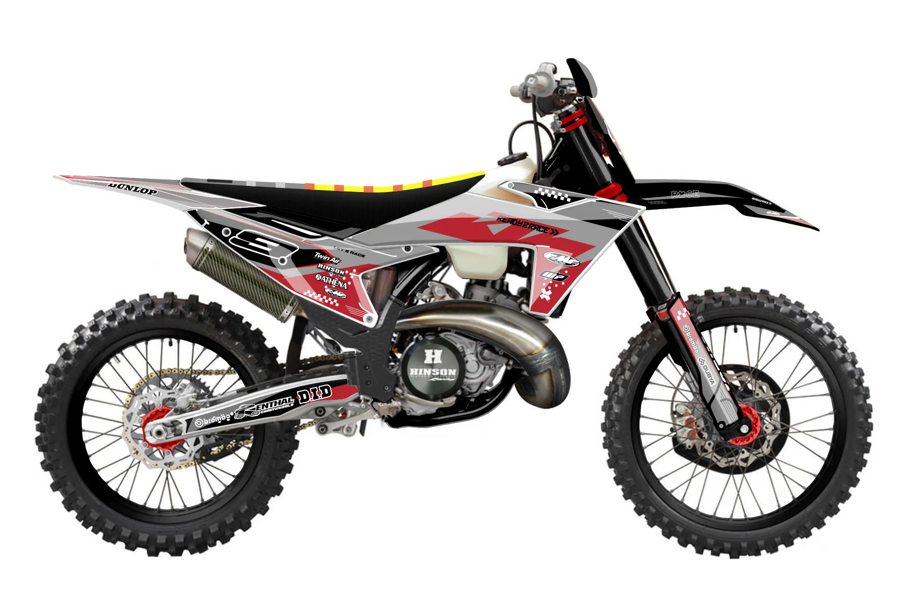 «Tack» — готовый комплект графики серии Staple для KTM Offroad Graphic Kit KTM XC 250 2023. В комплекте: графика на бак и боковые облицовки, крылья (переднее и заднее), передний щиток, номерные таблички, защита вилки. Материал: ПВХ-винил 80 мкр с холодной ламинацией 300 мкр, общая толщина 380 мкр; покрытие глянцевое или матовое на выбор. Устойчив к UV-излучению, воде, бензину и мойке высокого давления. Клей акриловый на сольвентной основе — постоянный, для гибких пластиков. На простых поверхностях монтируется без нагрева; для сложных изгибов рекомендуем фен. Этот пресет можно заказать как есть или взять за основу в конструкторе: поменять цвета, добавить стартовый номер и свой бренд. Производство — 3–5 рабочих дней, доставка по России СДЭКом или Почтой, по СНГ — курьерскими службами.