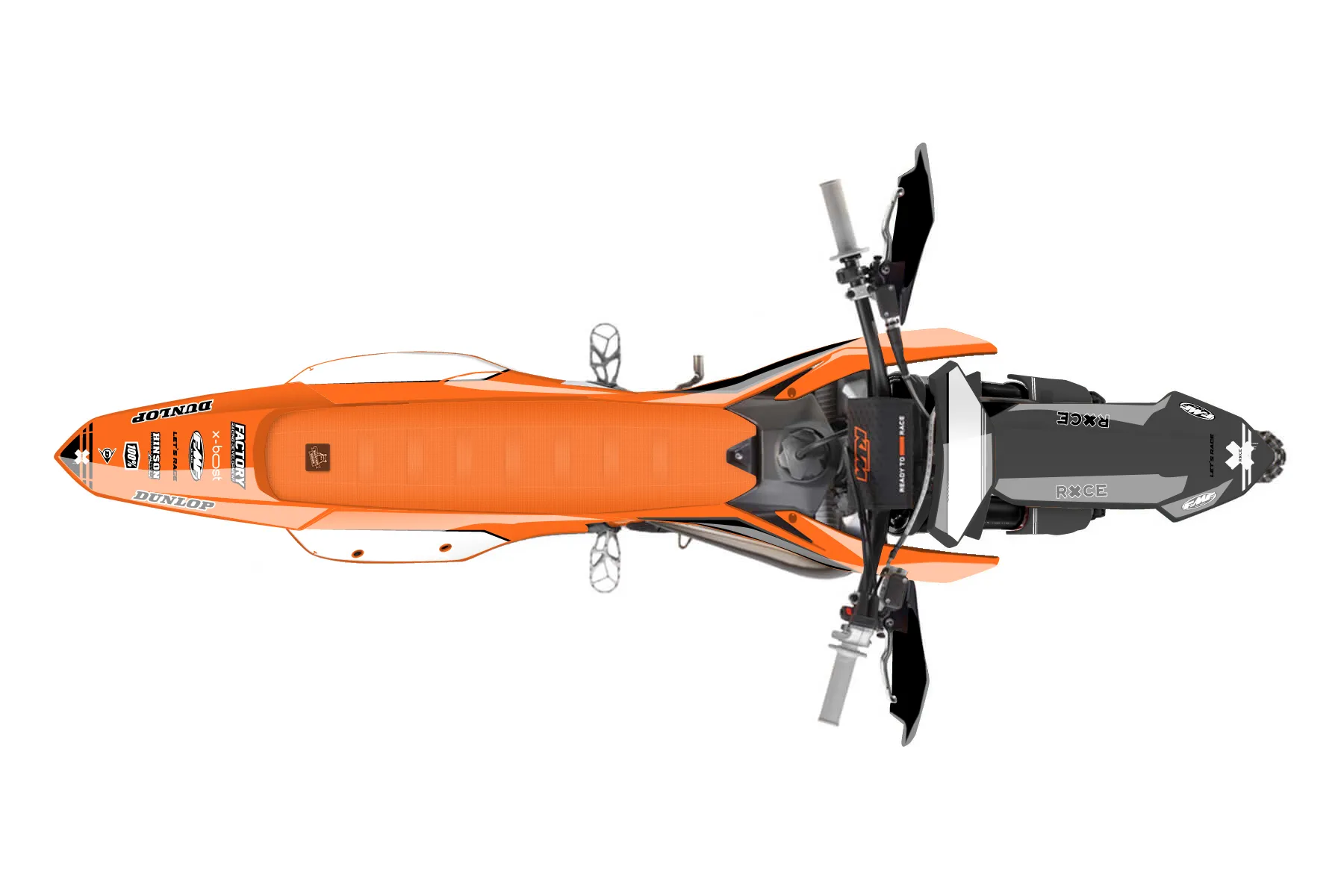 «Certain» — готовый комплект графики серии Untucked для KTM Offroad Graphic Kit KTM XC 250 2023. В комплекте: графика на бак и боковые облицовки, крылья (переднее и заднее), передний щиток, номерные таблички, защита вилки. Материал: ПВХ-винил 80 мкр с холодной ламинацией 300 мкр, общая толщина 380 мкр; покрытие глянцевое или матовое на выбор. Устойчив к UV-излучению, воде, бензину и мойке высокого давления. Клей акриловый на сольвентной основе — постоянный, для гибких пластиков. На простых поверхностях монтируется без нагрева; для сложных изгибов рекомендуем фен. Этот пресет можно заказать как есть или взять за основу в конструкторе: поменять цвета, добавить стартовый номер и свой бренд. Производство — 3–5 рабочих дней, доставка по России СДЭКом или Почтой, по СНГ — курьерскими службами.