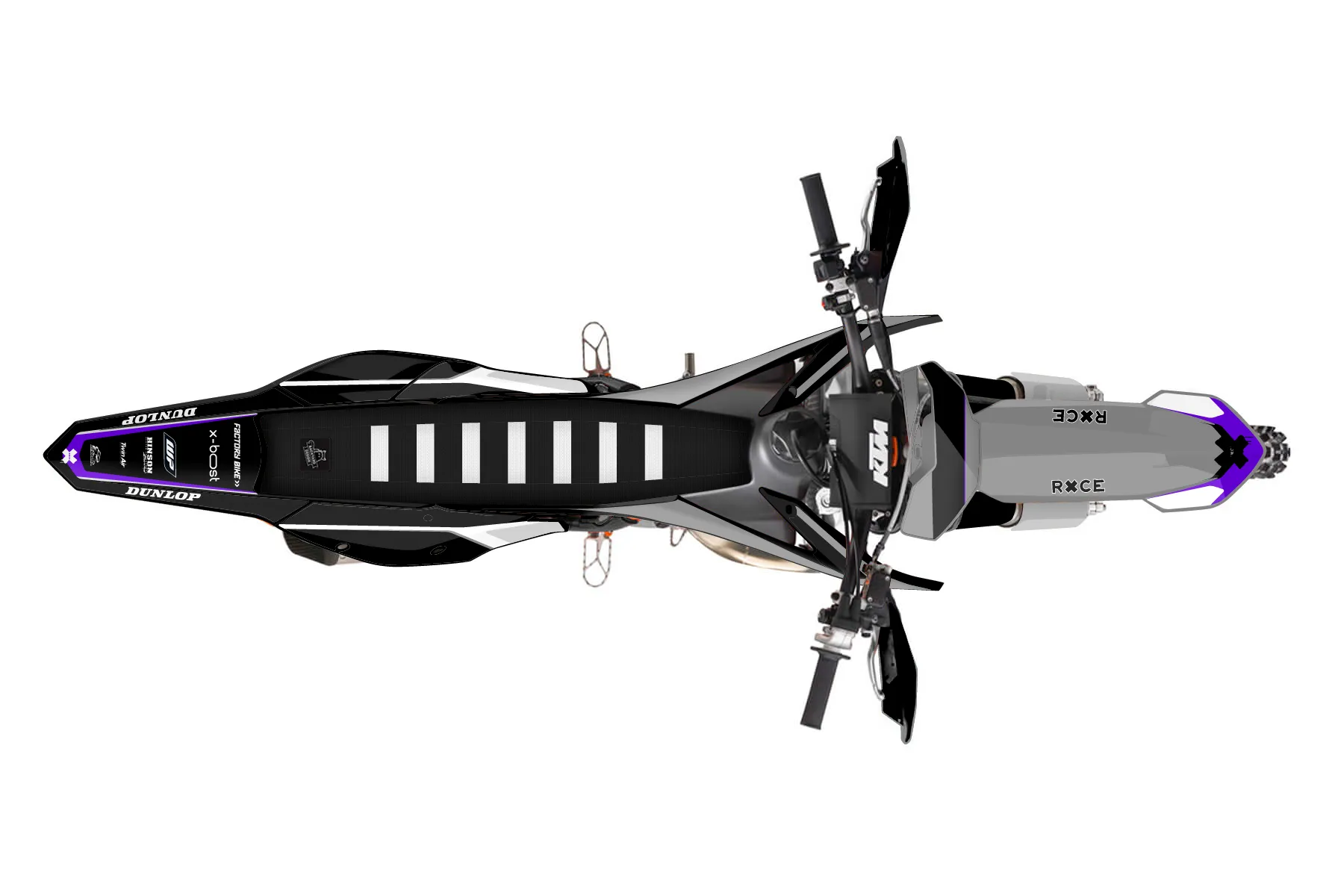 «Cyber Pirate» — готовый комплект графики серии Flow для KTM Offroad Graphic Kit KTM XC 300 2016. В комплекте: графика на бак и боковые облицовки, крылья (переднее и заднее), передний щиток, номерные таблички, защита вилки. Материал: ПВХ-винил 80 мкр с холодной ламинацией 300 мкр, общая толщина 380 мкр; покрытие глянцевое или матовое на выбор. Устойчив к UV-излучению, воде, бензину и мойке высокого давления. Клей акриловый на сольвентной основе — постоянный, для гибких пластиков. На простых поверхностях монтируется без нагрева; для сложных изгибов рекомендуем фен. Этот пресет можно заказать как есть или взять за основу в конструкторе: поменять цвета, добавить стартовый номер и свой бренд. Производство — 3–5 рабочих дней, доставка по России СДЭКом или Почтой, по СНГ — курьерскими службами.