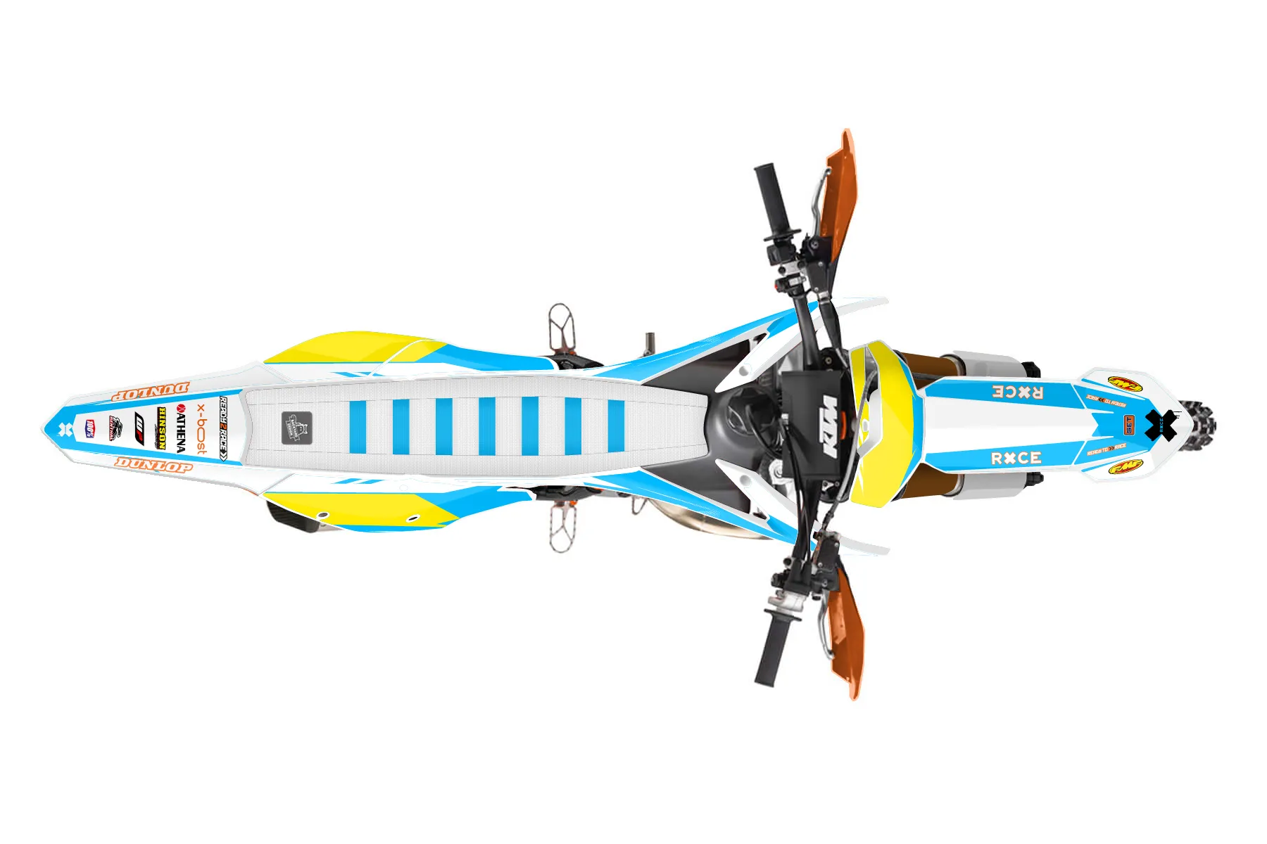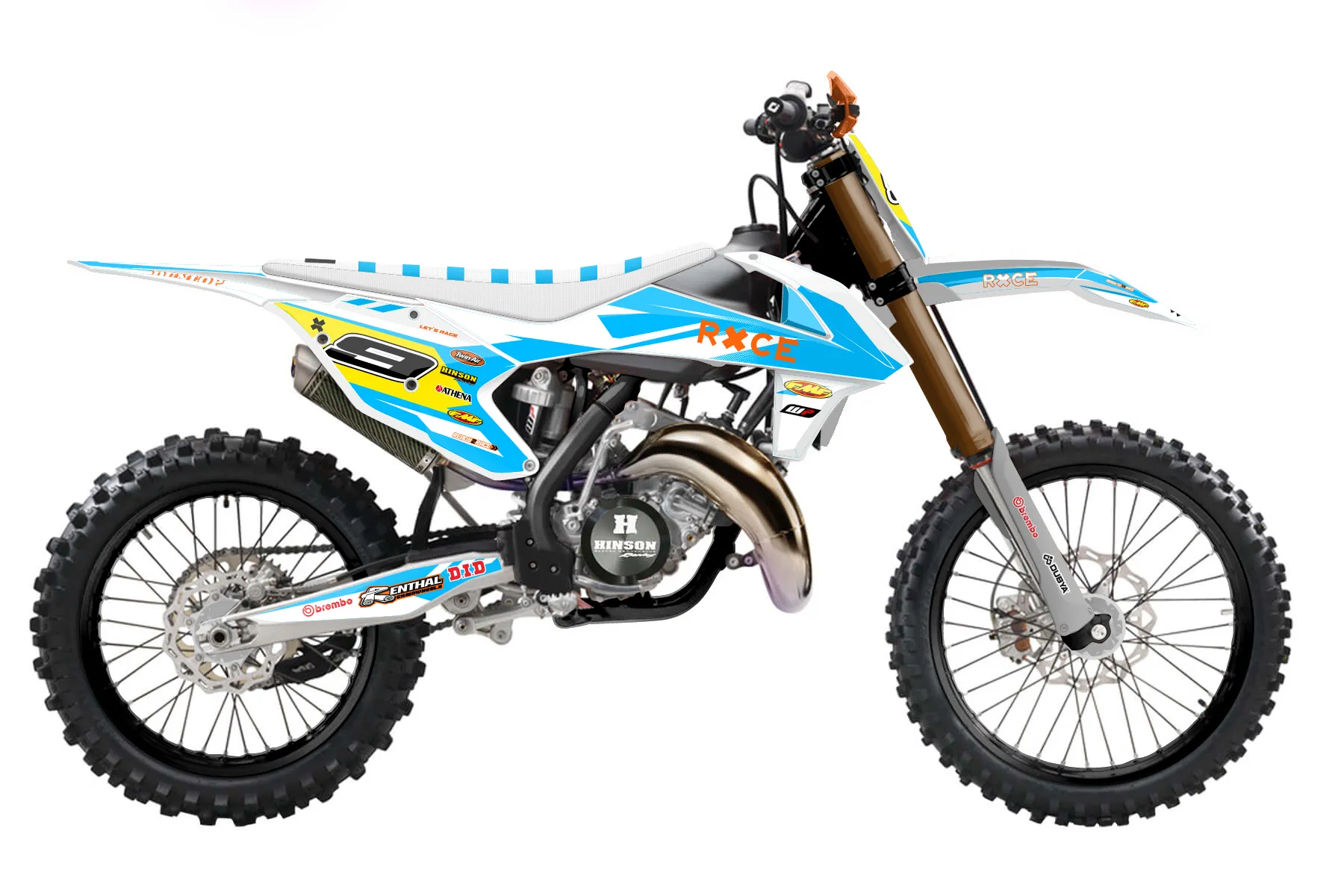 «Blue and white » — готовый комплект графики серии Maverick для KTM Offroad Graphic Kit KTM XC 300 2016. В комплекте: графика на бак и боковые облицовки, крылья (переднее и заднее), передний щиток, номерные таблички, защита вилки. Материал: ПВХ-винил 80 мкр с холодной ламинацией 300 мкр, общая толщина 380 мкр; покрытие глянцевое или матовое на выбор. Устойчив к UV-излучению, воде, бензину и мойке высокого давления. Клей акриловый на сольвентной основе — постоянный, для гибких пластиков. На простых поверхностях монтируется без нагрева; для сложных изгибов рекомендуем фен. Этот пресет можно заказать как есть или взять за основу в конструкторе: поменять цвета, добавить стартовый номер и свой бренд. Производство — 3–5 рабочих дней, доставка по России СДЭКом или Почтой, по СНГ — курьерскими службами.