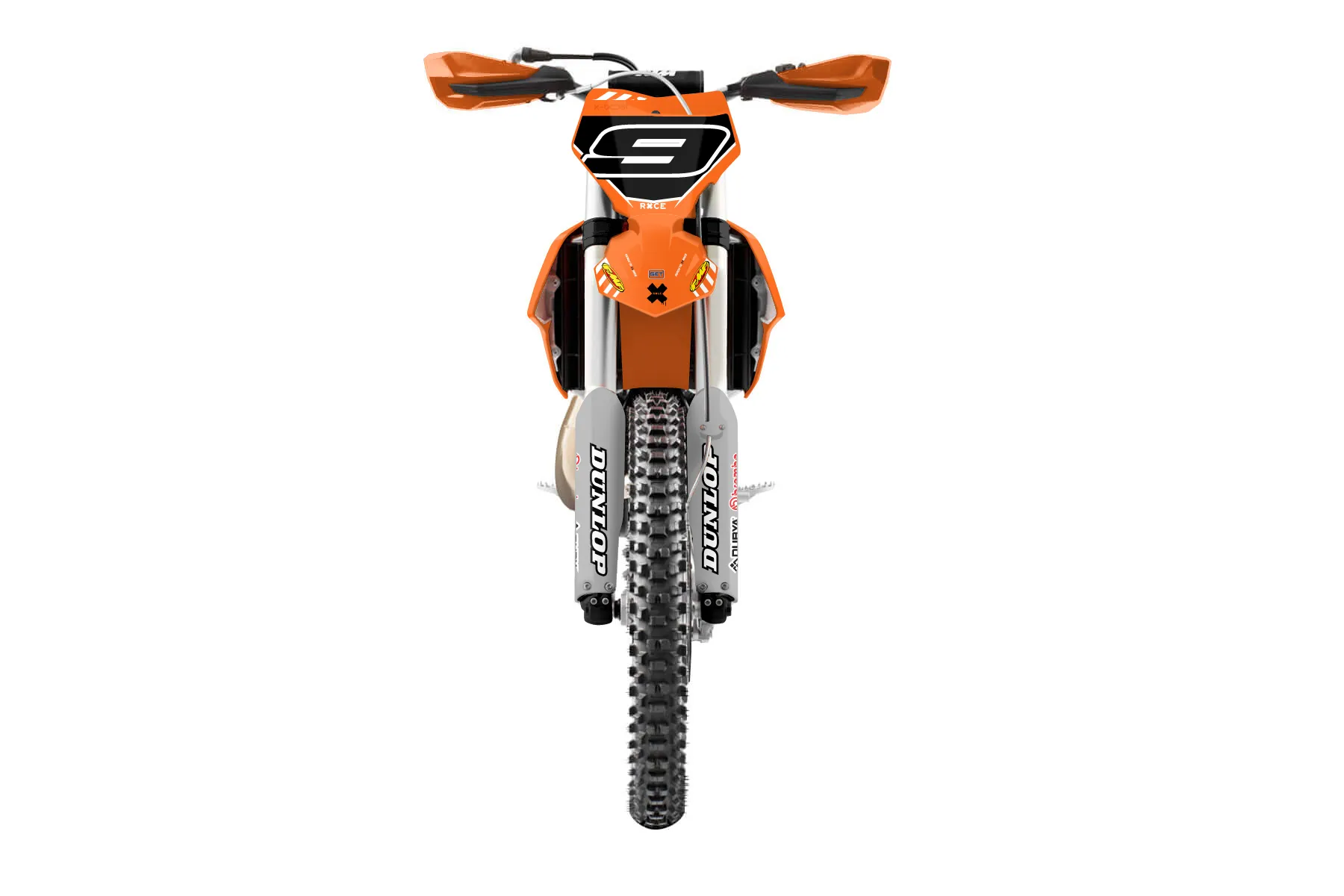 «Express» — готовый комплект графики серии Maverick для KTM Offroad Graphic Kit KTM XC 300 2016. В комплекте: графика на бак и боковые облицовки, крылья (переднее и заднее), передний щиток, номерные таблички, защита вилки. Материал: ПВХ-винил 80 мкр с холодной ламинацией 300 мкр, общая толщина 380 мкр; покрытие глянцевое или матовое на выбор. Устойчив к UV-излучению, воде, бензину и мойке высокого давления. Клей акриловый на сольвентной основе — постоянный, для гибких пластиков. На простых поверхностях монтируется без нагрева; для сложных изгибов рекомендуем фен. Этот пресет можно заказать как есть или взять за основу в конструкторе: поменять цвета, добавить стартовый номер и свой бренд. Производство — 3–5 рабочих дней, доставка по России СДЭКом или Почтой, по СНГ — курьерскими службами.