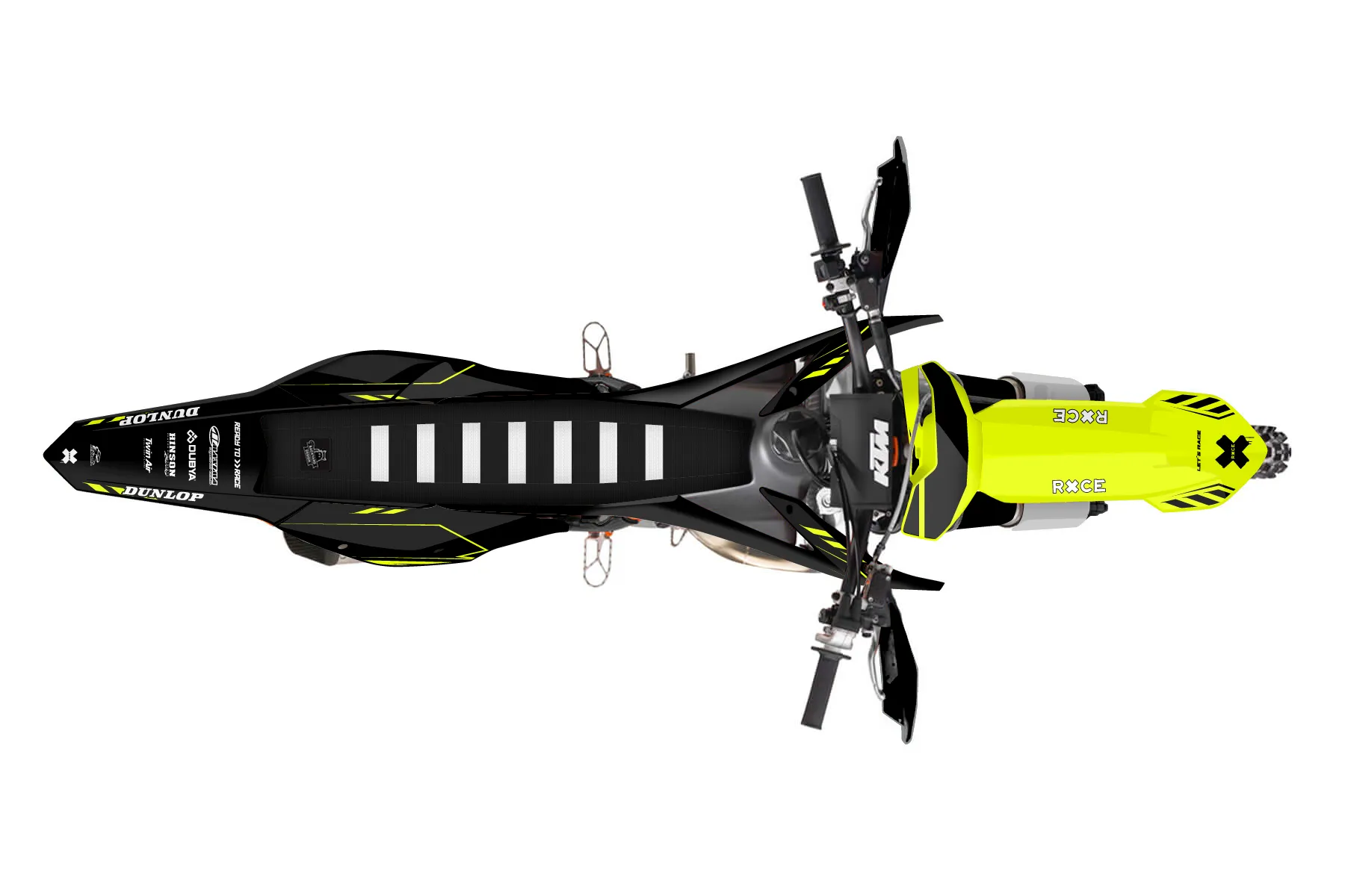 «Kitted Neon» — готовый комплект графики серии Maverick для KTM Offroad Graphic Kit KTM XC 300 2016. В комплекте: графика на бак и боковые облицовки, крылья (переднее и заднее), передний щиток, номерные таблички, защита вилки. Материал: ПВХ-винил 80 мкр с холодной ламинацией 300 мкр, общая толщина 380 мкр; покрытие глянцевое или матовое на выбор. Устойчив к UV-излучению, воде, бензину и мойке высокого давления. Клей акриловый на сольвентной основе — постоянный, для гибких пластиков. На простых поверхностях монтируется без нагрева; для сложных изгибов рекомендуем фен. Этот пресет можно заказать как есть или взять за основу в конструкторе: поменять цвета, добавить стартовый номер и свой бренд. Производство — 3–5 рабочих дней, доставка по России СДЭКом или Почтой, по СНГ — курьерскими службами.