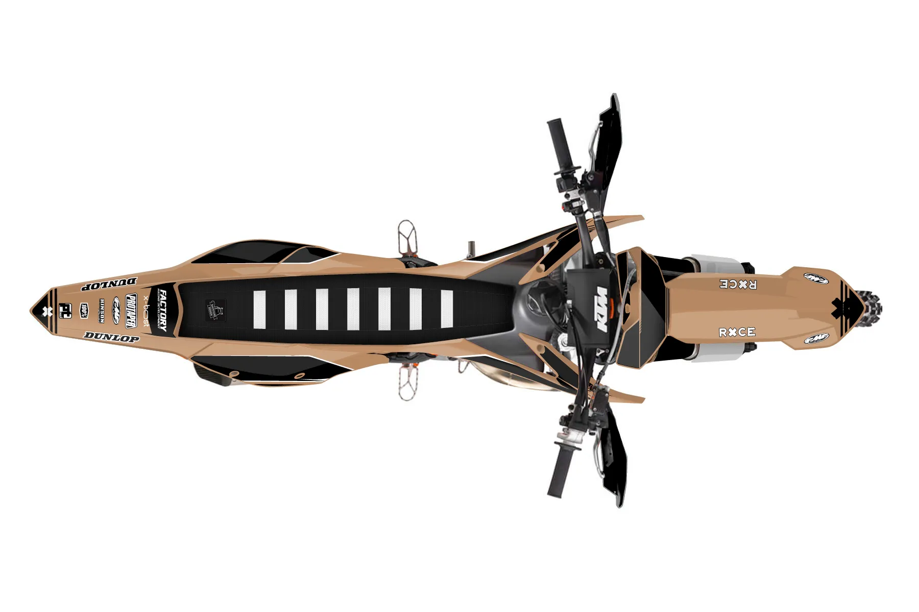«Entire» — готовый комплект графики серии Untucked для KTM Offroad Graphic Kit KTM XC 300 2016. В комплекте: графика на бак и боковые облицовки, крылья (переднее и заднее), передний щиток, номерные таблички, защита вилки. Материал: ПВХ-винил 80 мкр с холодной ламинацией 300 мкр, общая толщина 380 мкр; покрытие глянцевое или матовое на выбор. Устойчив к UV-излучению, воде, бензину и мойке высокого давления. Клей акриловый на сольвентной основе — постоянный, для гибких пластиков. На простых поверхностях монтируется без нагрева; для сложных изгибов рекомендуем фен. Этот пресет можно заказать как есть или взять за основу в конструкторе: поменять цвета, добавить стартовый номер и свой бренд. Производство — 3–5 рабочих дней, доставка по России СДЭКом или Почтой, по СНГ — курьерскими службами.