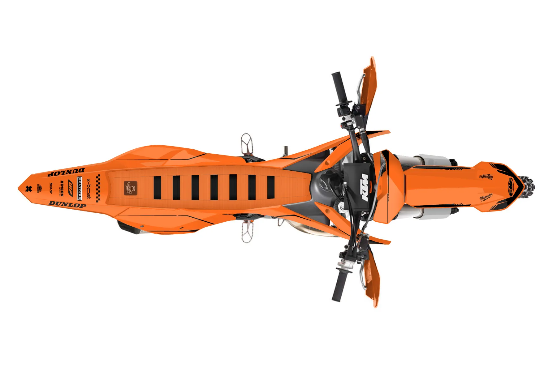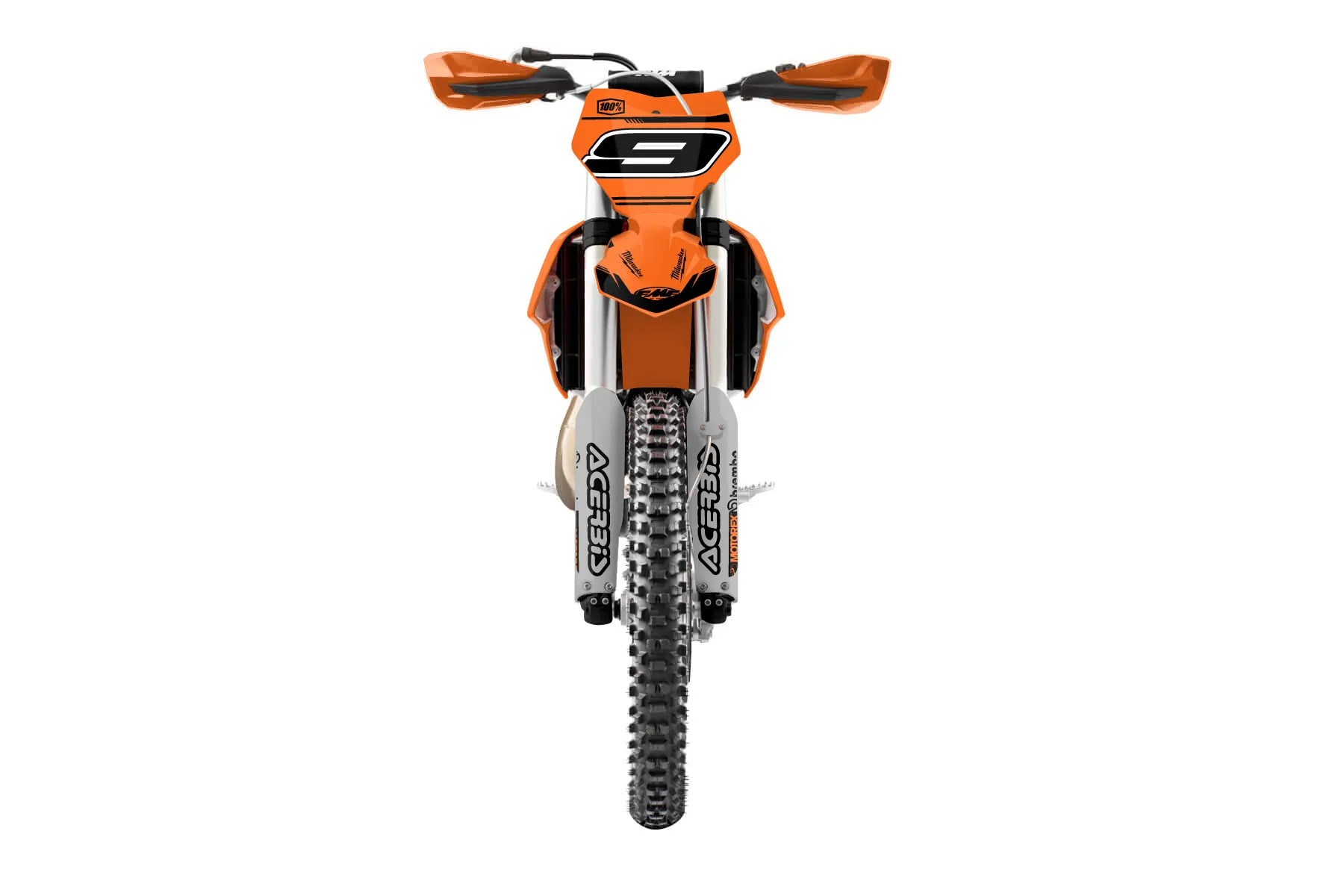 «orgblk ktm» — готовый комплект графики серии Untucked для KTM Offroad Graphic Kit KTM XC 300 2016. В комплекте: графика на бак и боковые облицовки, крылья (переднее и заднее), передний щиток, номерные таблички, защита вилки. Материал: ПВХ-винил 80 мкр с холодной ламинацией 300 мкр, общая толщина 380 мкр; покрытие глянцевое или матовое на выбор. Устойчив к UV-излучению, воде, бензину и мойке высокого давления. Клей акриловый на сольвентной основе — постоянный, для гибких пластиков. На простых поверхностях монтируется без нагрева; для сложных изгибов рекомендуем фен. Этот пресет можно заказать как есть или взять за основу в конструкторе: поменять цвета, добавить стартовый номер и свой бренд. Производство — 3–5 рабочих дней, доставка по России СДЭКом или Почтой, по СНГ — курьерскими службами.