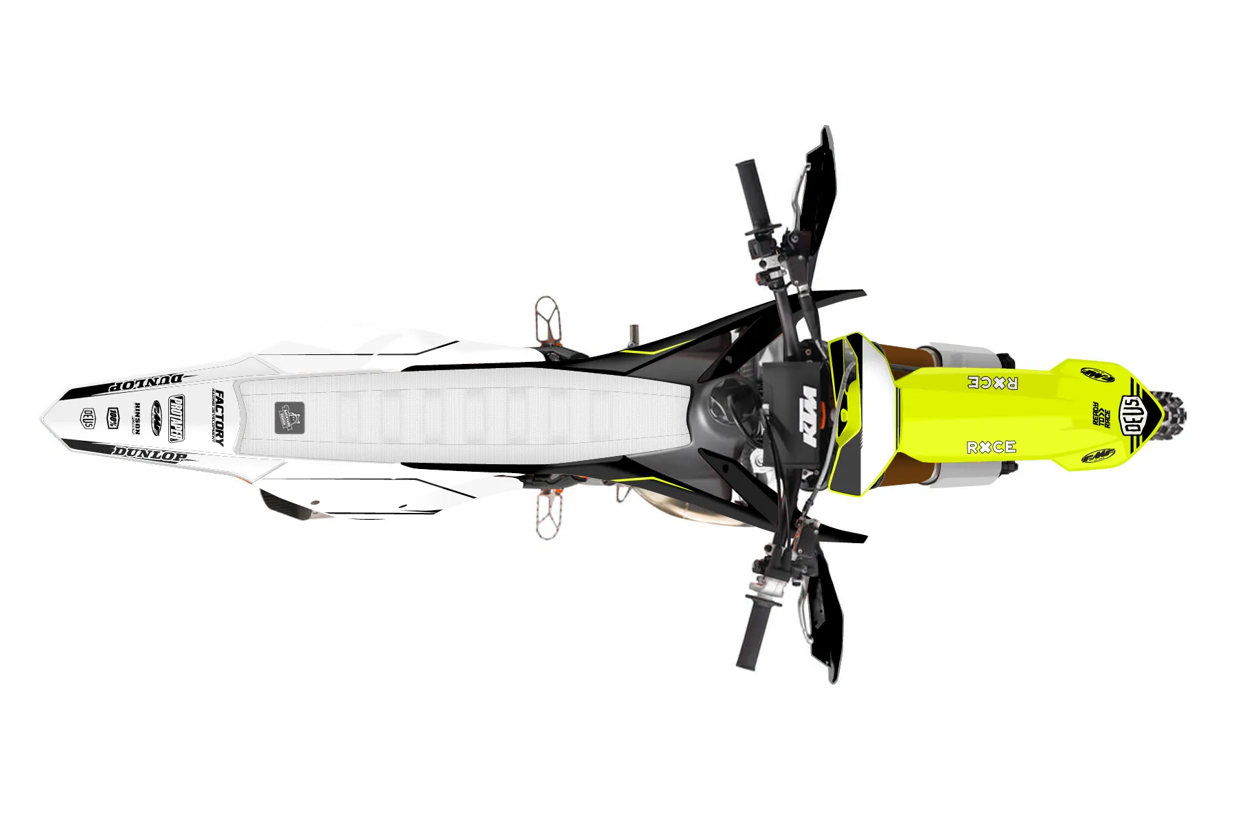 «Ride Neon» — готовый комплект графики серии Untucked для KTM Offroad Graphic Kit KTM XC 300 2016. В комплекте: графика на бак и боковые облицовки, крылья (переднее и заднее), передний щиток, номерные таблички, защита вилки. Материал: ПВХ-винил 80 мкр с холодной ламинацией 300 мкр, общая толщина 380 мкр; покрытие глянцевое или матовое на выбор. Устойчив к UV-излучению, воде, бензину и мойке высокого давления. Клей акриловый на сольвентной основе — постоянный, для гибких пластиков. На простых поверхностях монтируется без нагрева; для сложных изгибов рекомендуем фен. Этот пресет можно заказать как есть или взять за основу в конструкторе: поменять цвета, добавить стартовый номер и свой бренд. Производство — 3–5 рабочих дней, доставка по России СДЭКом или Почтой, по СНГ — курьерскими службами.