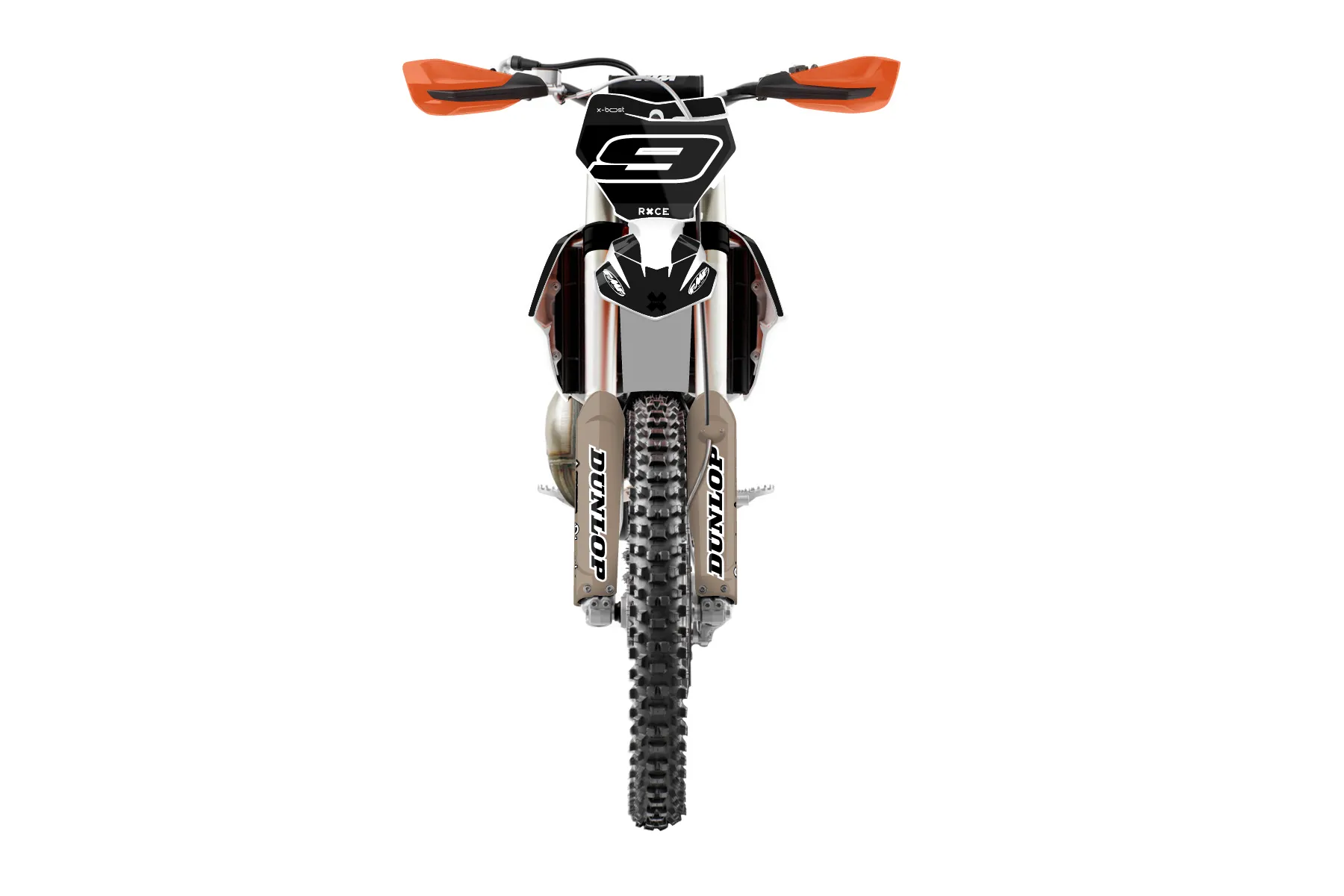 «Orange» — готовый комплект графики серии Flow для KTM Offroad Graphic Kit KTM XC 300 2019. В комплекте: графика на бак и боковые облицовки, крылья (переднее и заднее), передний щиток, номерные таблички, защита вилки. Материал: ПВХ-винил 80 мкр с холодной ламинацией 300 мкр, общая толщина 380 мкр; покрытие глянцевое или матовое на выбор. Устойчив к UV-излучению, воде, бензину и мойке высокого давления. Клей акриловый на сольвентной основе — постоянный, для гибких пластиков. На простых поверхностях монтируется без нагрева; для сложных изгибов рекомендуем фен. Этот пресет можно заказать как есть или взять за основу в конструкторе: поменять цвета, добавить стартовый номер и свой бренд. Производство — 3–5 рабочих дней, доставка по России СДЭКом или Почтой, по СНГ — курьерскими службами.
