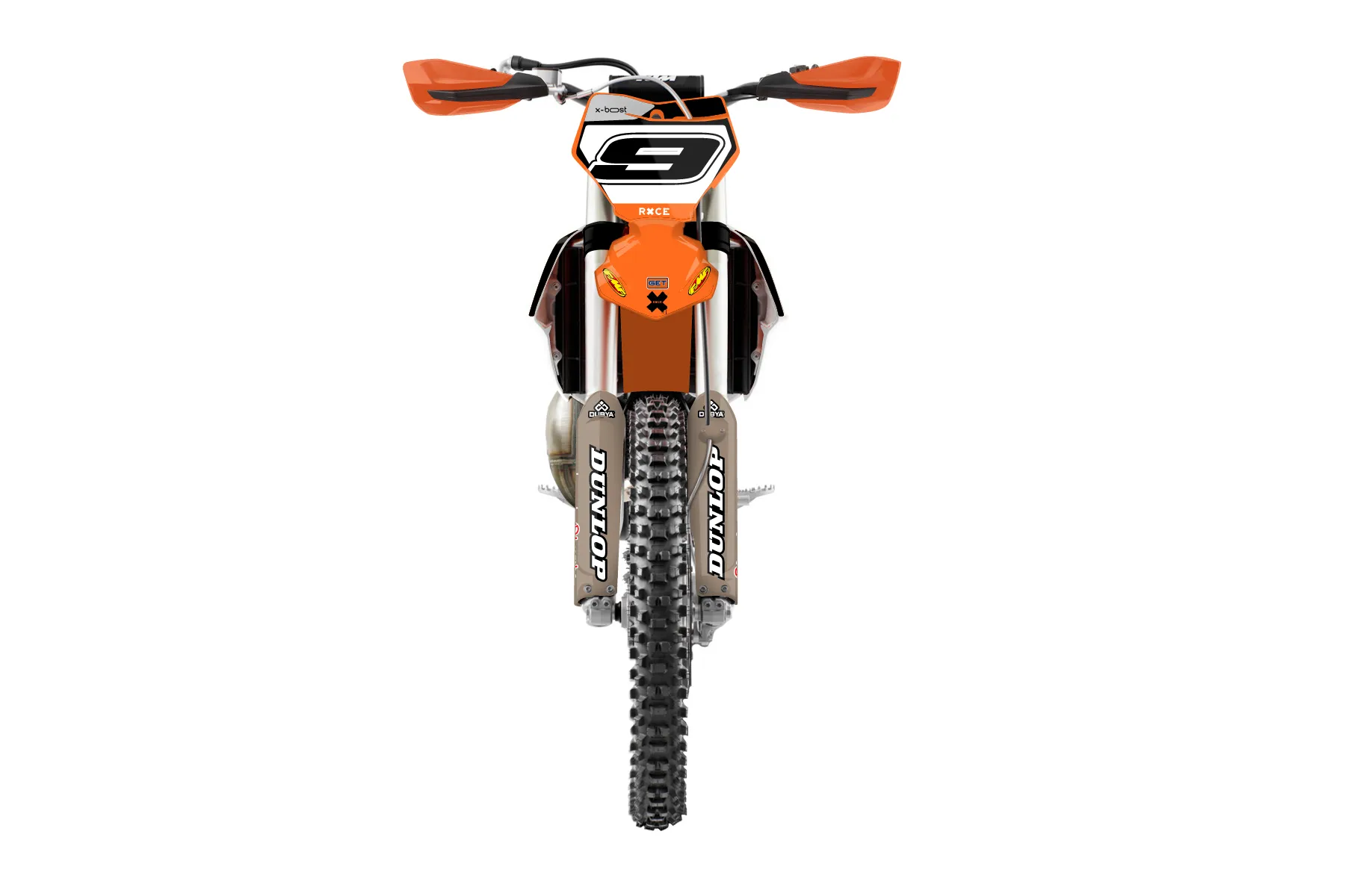 «Whip» — готовый комплект графики серии Flow для KTM Offroad Graphic Kit KTM XC 300 2019. В комплекте: графика на бак и боковые облицовки, крылья (переднее и заднее), передний щиток, номерные таблички, защита вилки. Материал: ПВХ-винил 80 мкр с холодной ламинацией 300 мкр, общая толщина 380 мкр; покрытие глянцевое или матовое на выбор. Устойчив к UV-излучению, воде, бензину и мойке высокого давления. Клей акриловый на сольвентной основе — постоянный, для гибких пластиков. На простых поверхностях монтируется без нагрева; для сложных изгибов рекомендуем фен. Этот пресет можно заказать как есть или взять за основу в конструкторе: поменять цвета, добавить стартовый номер и свой бренд. Производство — 3–5 рабочих дней, доставка по России СДЭКом или Почтой, по СНГ — курьерскими службами.