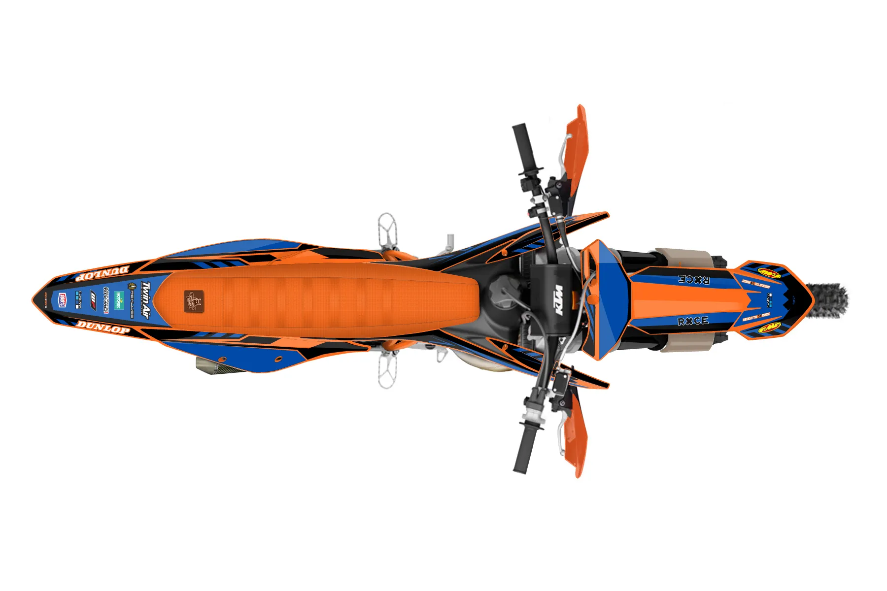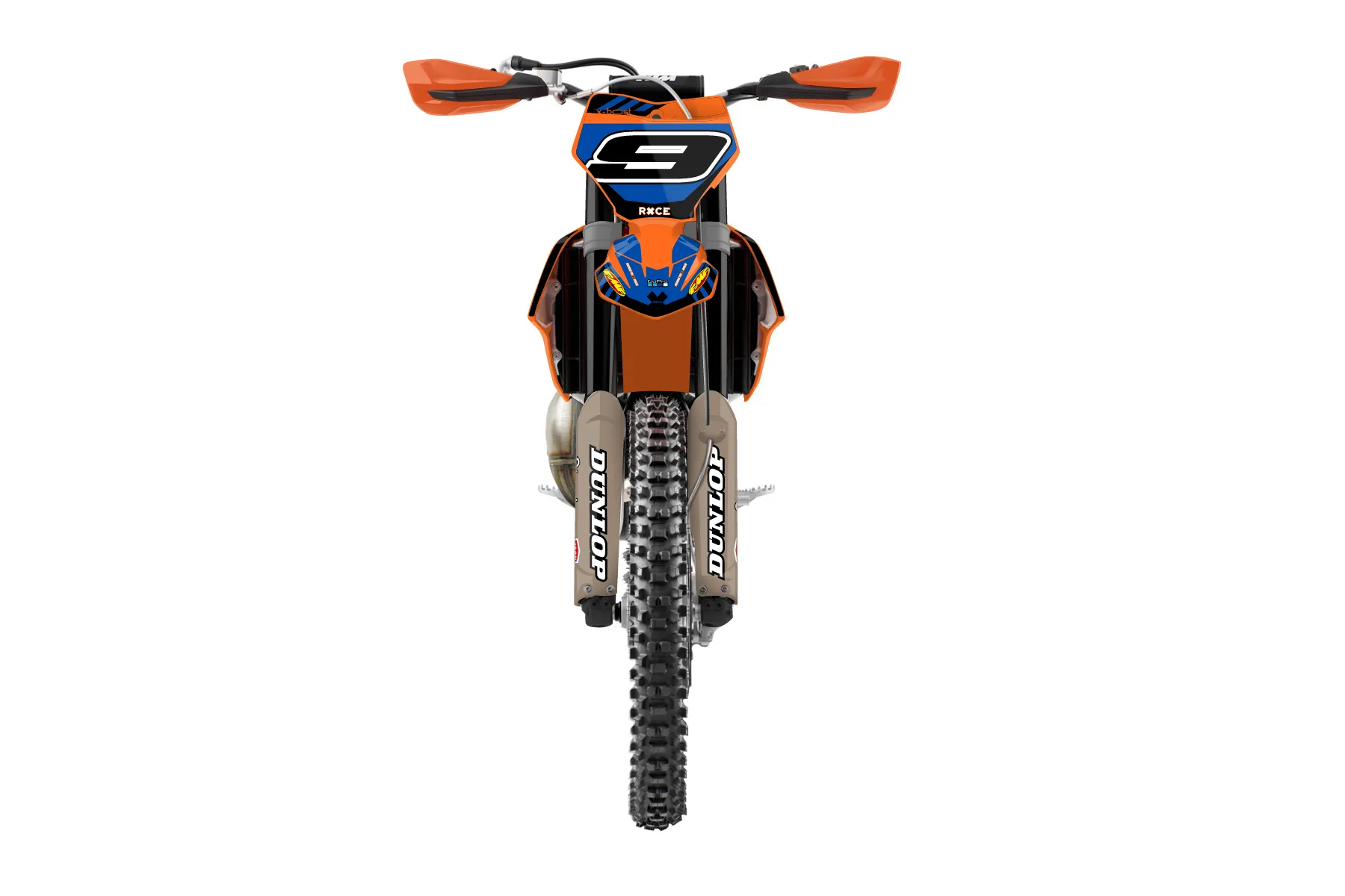 «final product » — готовый комплект графики серии Maverick для KTM Offroad Graphic Kit KTM XC 300 2019. В комплекте: графика на бак и боковые облицовки, крылья (переднее и заднее), передний щиток, номерные таблички, защита вилки. Материал: ПВХ-винил 80 мкр с холодной ламинацией 300 мкр, общая толщина 380 мкр; покрытие глянцевое или матовое на выбор. Устойчив к UV-излучению, воде, бензину и мойке высокого давления. Клей акриловый на сольвентной основе — постоянный, для гибких пластиков. На простых поверхностях монтируется без нагрева; для сложных изгибов рекомендуем фен. Этот пресет можно заказать как есть или взять за основу в конструкторе: поменять цвета, добавить стартовый номер и свой бренд. Производство — 3–5 рабочих дней, доставка по России СДЭКом или Почтой, по СНГ — курьерскими службами.