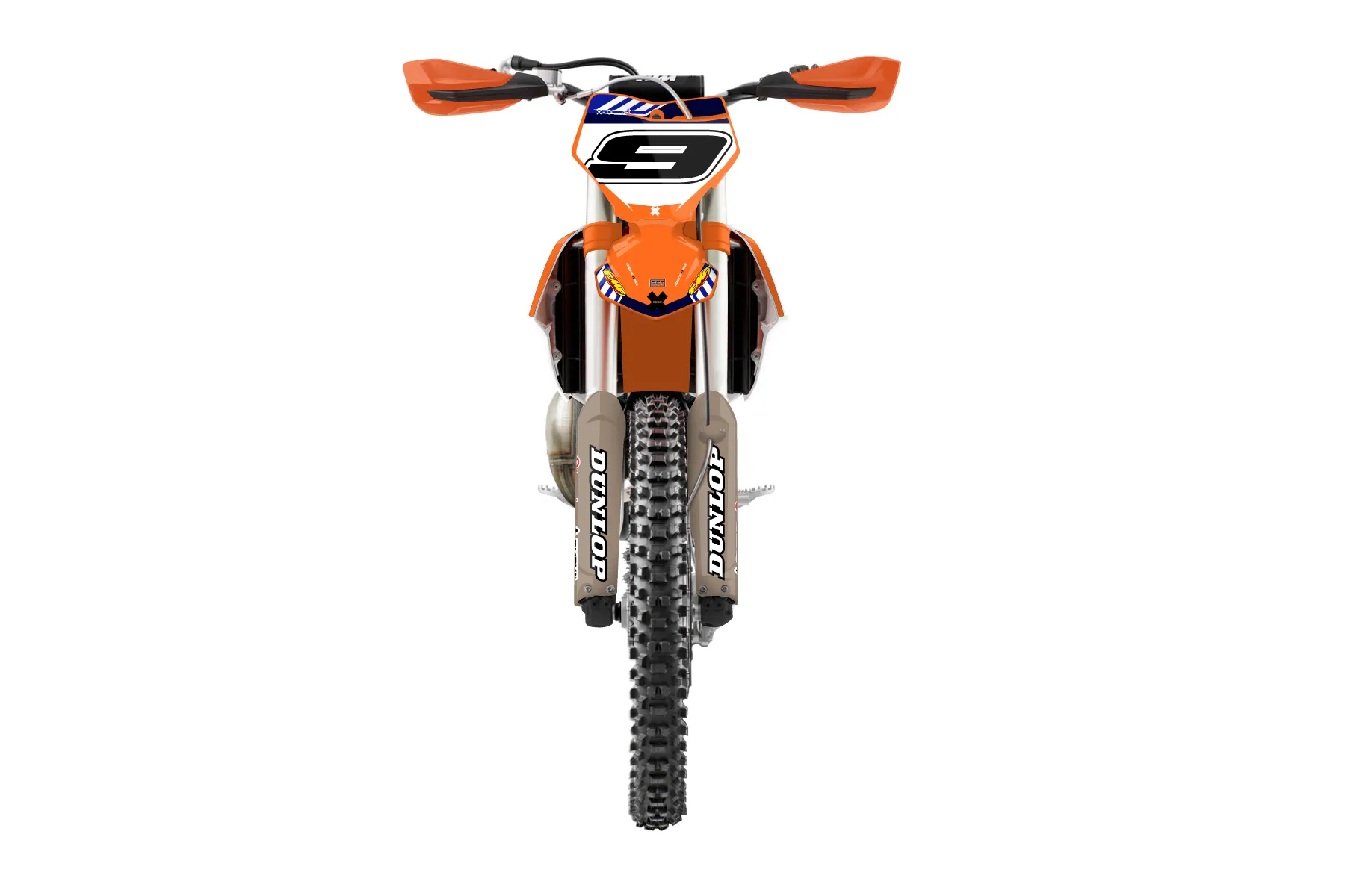 «Fuzion» — готовый комплект графики серии Maverick для KTM Offroad Graphic Kit KTM XC 300 2019. В комплекте: графика на бак и боковые облицовки, крылья (переднее и заднее), передний щиток, номерные таблички, защита вилки. Материал: ПВХ-винил 80 мкр с холодной ламинацией 300 мкр, общая толщина 380 мкр; покрытие глянцевое или матовое на выбор. Устойчив к UV-излучению, воде, бензину и мойке высокого давления. Клей акриловый на сольвентной основе — постоянный, для гибких пластиков. На простых поверхностях монтируется без нагрева; для сложных изгибов рекомендуем фен. Этот пресет можно заказать как есть или взять за основу в конструкторе: поменять цвета, добавить стартовый номер и свой бренд. Производство — 3–5 рабочих дней, доставка по России СДЭКом или Почтой, по СНГ — курьерскими службами.
