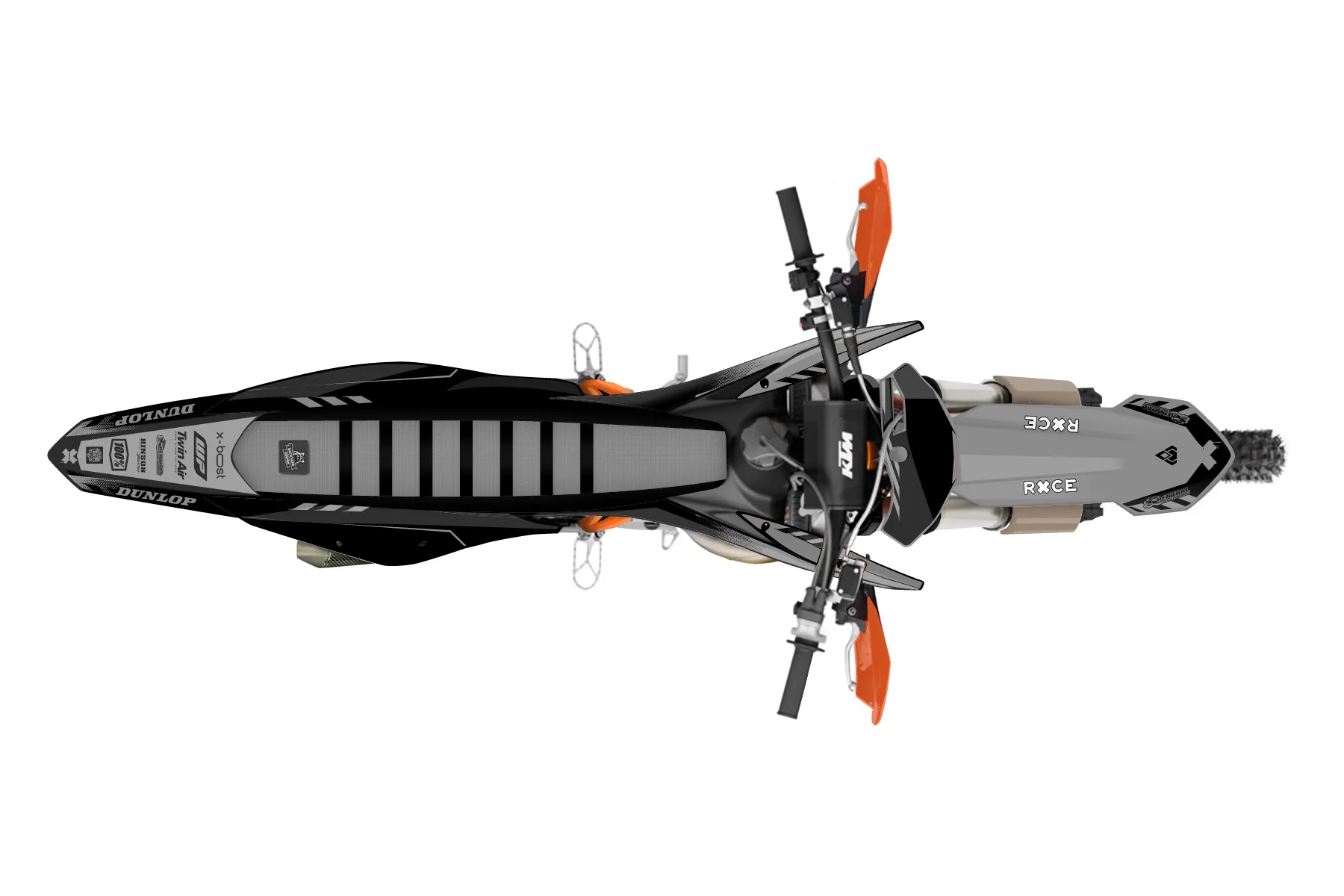 «Grip» — готовый комплект графики серии Maverick для KTM Offroad Graphic Kit KTM XC 300 2019. В комплекте: графика на бак и боковые облицовки, крылья (переднее и заднее), передний щиток, номерные таблички, защита вилки. Материал: ПВХ-винил 80 мкр с холодной ламинацией 300 мкр, общая толщина 380 мкр; покрытие глянцевое или матовое на выбор. Устойчив к UV-излучению, воде, бензину и мойке высокого давления. Клей акриловый на сольвентной основе — постоянный, для гибких пластиков. На простых поверхностях монтируется без нагрева; для сложных изгибов рекомендуем фен. Этот пресет можно заказать как есть или взять за основу в конструкторе: поменять цвета, добавить стартовый номер и свой бренд. Производство — 3–5 рабочих дней, доставка по России СДЭКом или Почтой, по СНГ — курьерскими службами.