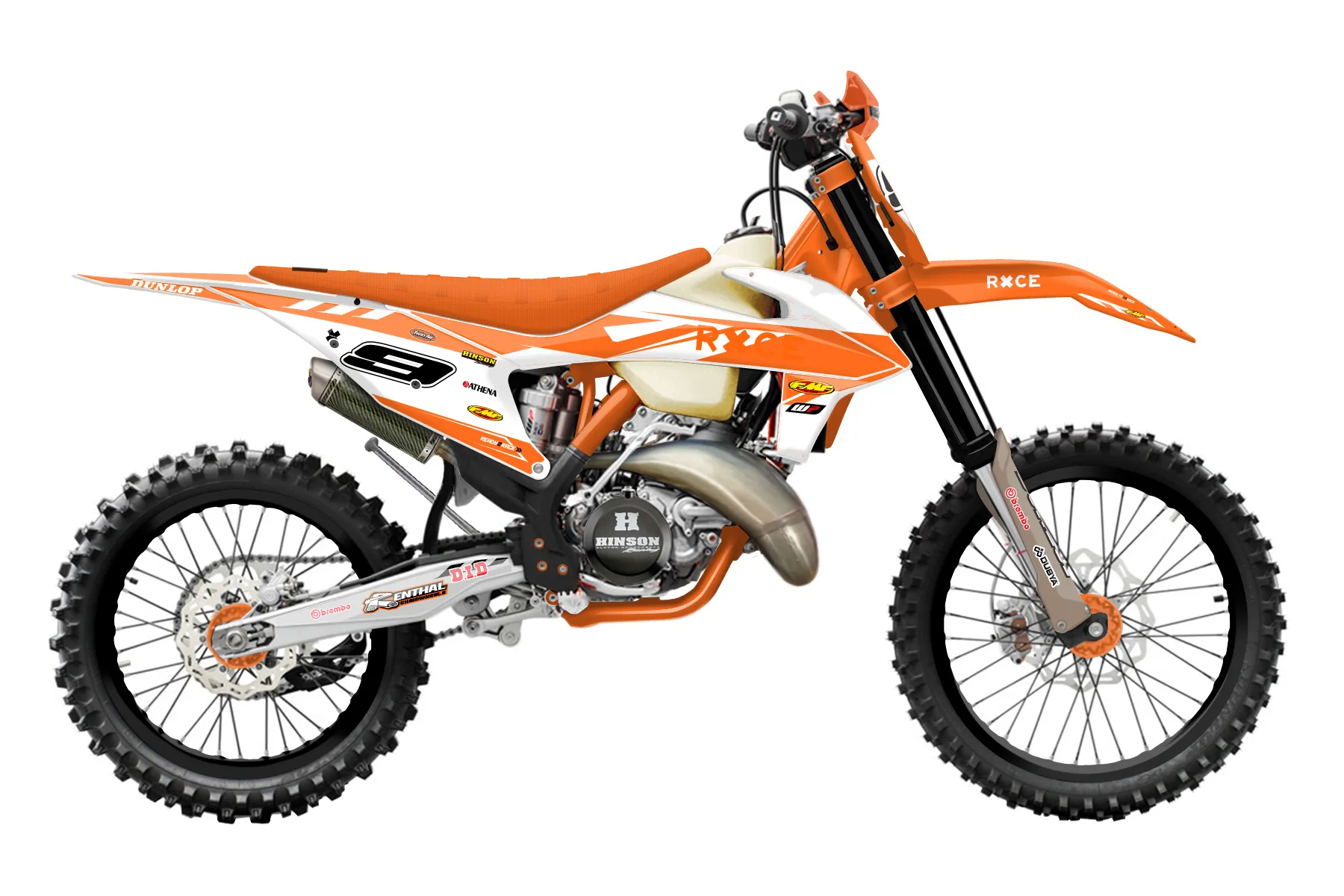 «Swapp» — готовый комплект графики серии Maverick для KTM Offroad Graphic Kit KTM XC 300 2019. В комплекте: графика на бак и боковые облицовки, крылья (переднее и заднее), передний щиток, номерные таблички, защита вилки. Материал: ПВХ-винил 80 мкр с холодной ламинацией 300 мкр, общая толщина 380 мкр; покрытие глянцевое или матовое на выбор. Устойчив к UV-излучению, воде, бензину и мойке высокого давления. Клей акриловый на сольвентной основе — постоянный, для гибких пластиков. На простых поверхностях монтируется без нагрева; для сложных изгибов рекомендуем фен. Этот пресет можно заказать как есть или взять за основу в конструкторе: поменять цвета, добавить стартовый номер и свой бренд. Производство — 3–5 рабочих дней, доставка по России СДЭКом или Почтой, по СНГ — курьерскими службами.