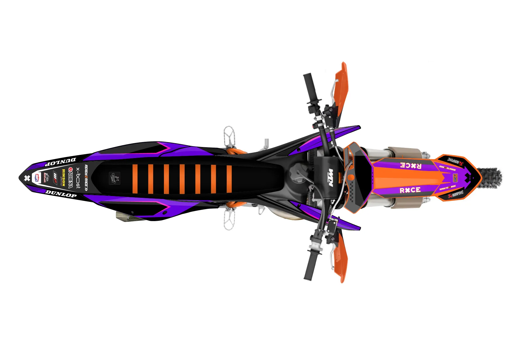«CustomDesigngddf» — готовый комплект графики серии Staple для KTM Offroad Graphic Kit KTM XC 300 2019. В комплекте: графика на бак и боковые облицовки, крылья (переднее и заднее), передний щиток, номерные таблички, защита вилки. Материал: ПВХ-винил 80 мкр с холодной ламинацией 300 мкр, общая толщина 380 мкр; покрытие глянцевое или матовое на выбор. Устойчив к UV-излучению, воде, бензину и мойке высокого давления. Клей акриловый на сольвентной основе — постоянный, для гибких пластиков. На простых поверхностях монтируется без нагрева; для сложных изгибов рекомендуем фен. Этот пресет можно заказать как есть или взять за основу в конструкторе: поменять цвета, добавить стартовый номер и свой бренд. Производство — 3–5 рабочих дней, доставка по России СДЭКом или Почтой, по СНГ — курьерскими службами.