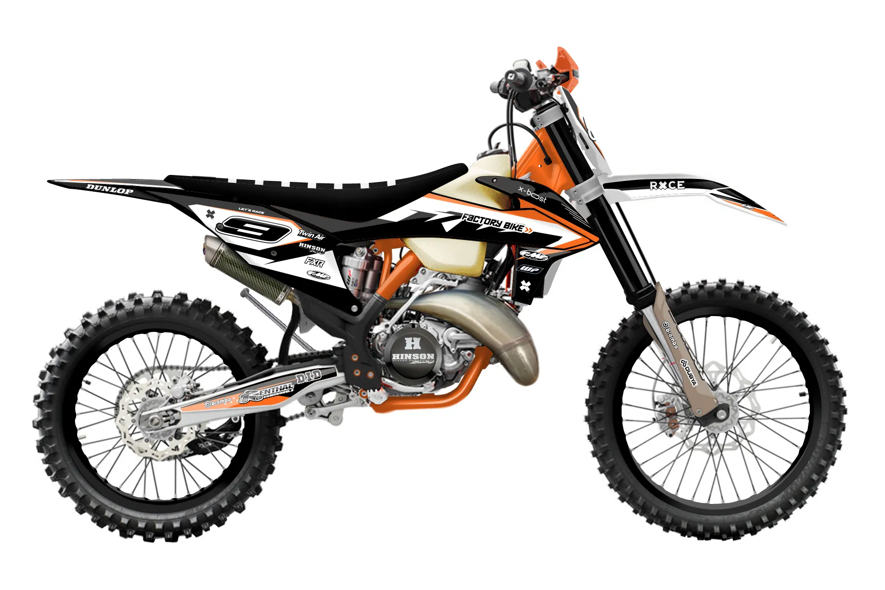 «CustomDesignKTM» — готовый комплект графики серии Staple для KTM Offroad Graphic Kit KTM XC 300 2019. В комплекте: графика на бак и боковые облицовки, крылья (переднее и заднее), передний щиток, номерные таблички, защита вилки. Материал: ПВХ-винил 80 мкр с холодной ламинацией 300 мкр, общая толщина 380 мкр; покрытие глянцевое или матовое на выбор. Устойчив к UV-излучению, воде, бензину и мойке высокого давления. Клей акриловый на сольвентной основе — постоянный, для гибких пластиков. На простых поверхностях монтируется без нагрева; для сложных изгибов рекомендуем фен. Этот пресет можно заказать как есть или взять за основу в конструкторе: поменять цвета, добавить стартовый номер и свой бренд. Производство — 3–5 рабочих дней, доставка по России СДЭКом или Почтой, по СНГ — курьерскими службами.
