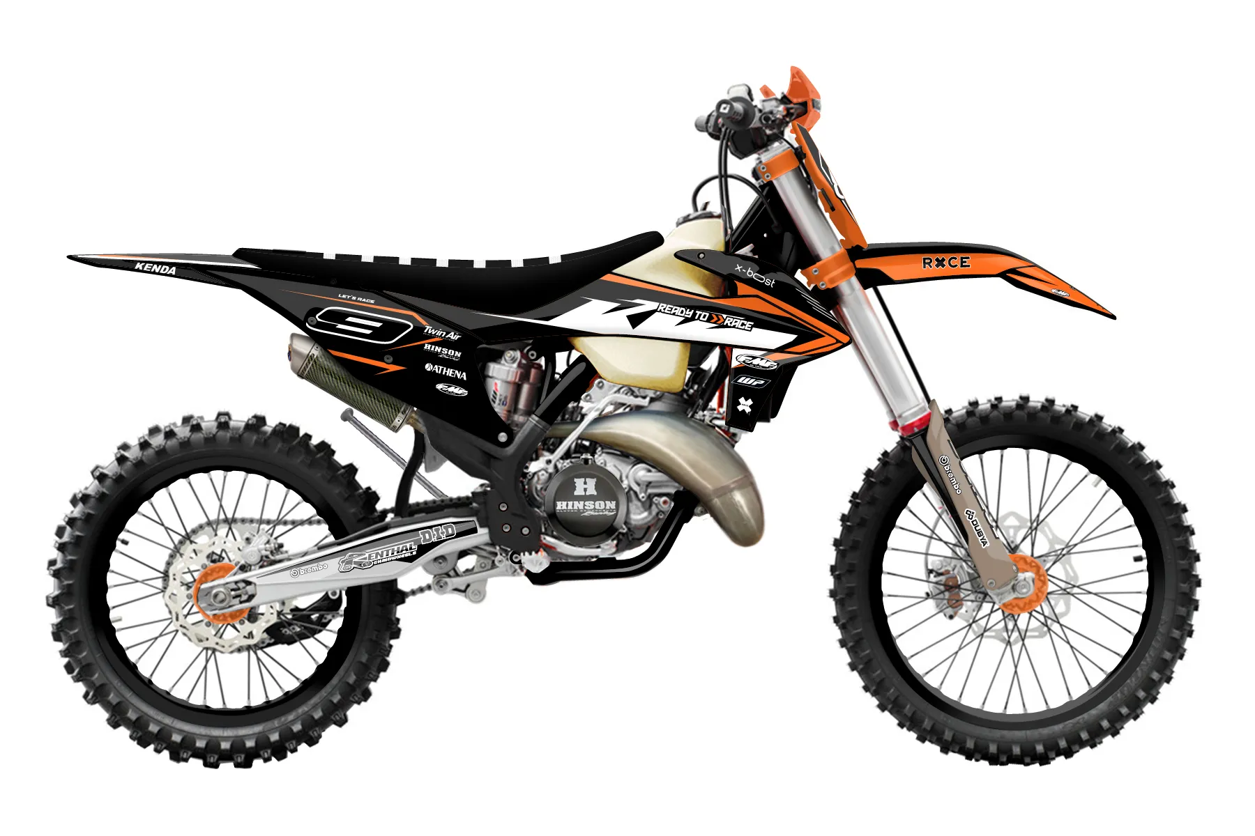 «ktm» — готовый комплект графики серии Staple для KTM Offroad Graphic Kit KTM XC 300 2019. В комплекте: графика на бак и боковые облицовки, крылья (переднее и заднее), передний щиток, номерные таблички, защита вилки. Материал: ПВХ-винил 80 мкр с холодной ламинацией 300 мкр, общая толщина 380 мкр; покрытие глянцевое или матовое на выбор. Устойчив к UV-излучению, воде, бензину и мойке высокого давления. Клей акриловый на сольвентной основе — постоянный, для гибких пластиков. На простых поверхностях монтируется без нагрева; для сложных изгибов рекомендуем фен. Этот пресет можно заказать как есть или взять за основу в конструкторе: поменять цвета, добавить стартовый номер и свой бренд. Производство — 3–5 рабочих дней, доставка по России СДЭКом или Почтой, по СНГ — курьерскими службами.