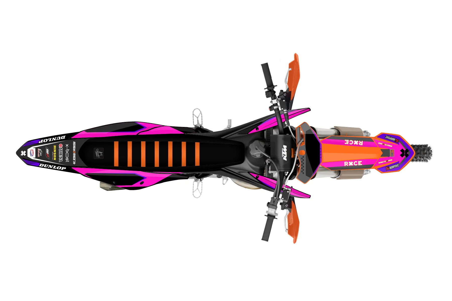 «remmle» — готовый комплект графики серии Staple для KTM Offroad Graphic Kit KTM XC 300 2019. В комплекте: графика на бак и боковые облицовки, крылья (переднее и заднее), передний щиток, номерные таблички, защита вилки. Материал: ПВХ-винил 80 мкр с холодной ламинацией 300 мкр, общая толщина 380 мкр; покрытие глянцевое или матовое на выбор. Устойчив к UV-излучению, воде, бензину и мойке высокого давления. Клей акриловый на сольвентной основе — постоянный, для гибких пластиков. На простых поверхностях монтируется без нагрева; для сложных изгибов рекомендуем фен. Этот пресет можно заказать как есть или взять за основу в конструкторе: поменять цвета, добавить стартовый номер и свой бренд. Производство — 3–5 рабочих дней, доставка по России СДЭКом или Почтой, по СНГ — курьерскими службами.