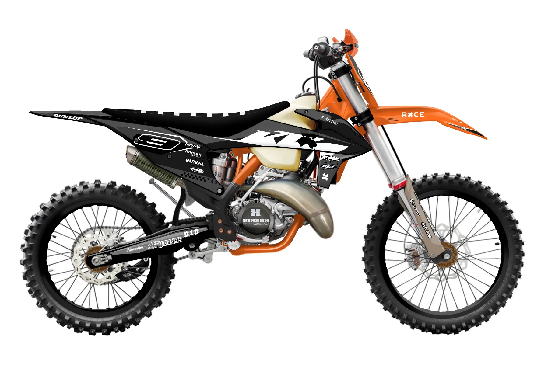 «Thrill» — готовый комплект графики серии Staple для KTM Offroad Graphic Kit KTM XC 300 2019. В комплекте: графика на бак и боковые облицовки, крылья (переднее и заднее), передний щиток, номерные таблички, защита вилки. Материал: ПВХ-винил 80 мкр с холодной ламинацией 300 мкр, общая толщина 380 мкр; покрытие глянцевое или матовое на выбор. Устойчив к UV-излучению, воде, бензину и мойке высокого давления. Клей акриловый на сольвентной основе — постоянный, для гибких пластиков. На простых поверхностях монтируется без нагрева; для сложных изгибов рекомендуем фен. Этот пресет можно заказать как есть или взять за основу в конструкторе: поменять цвета, добавить стартовый номер и свой бренд. Производство — 3–5 рабочих дней, доставка по России СДЭКом или Почтой, по СНГ — курьерскими службами.