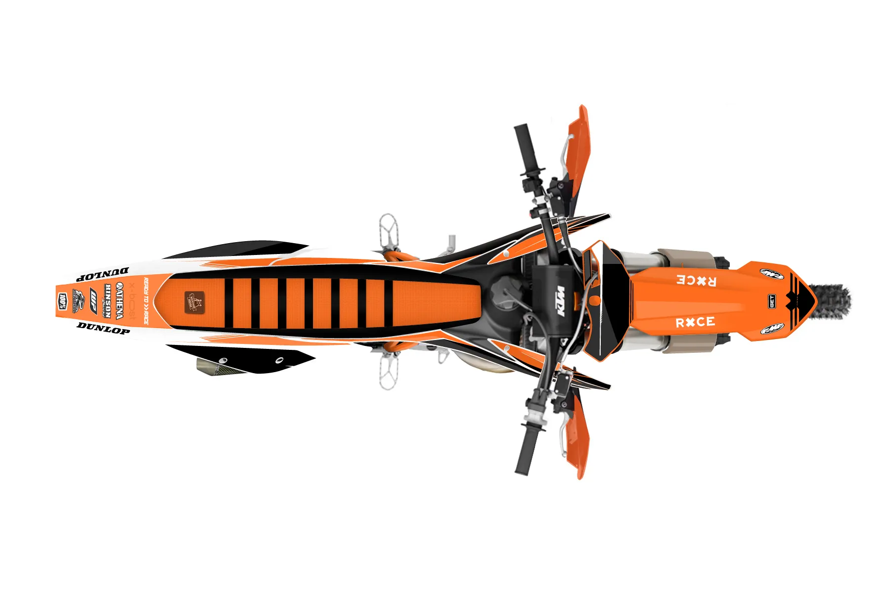 «Crowning» — готовый комплект графики серии Untucked для KTM Offroad Graphic Kit KTM XC 300 2019. В комплекте: графика на бак и боковые облицовки, крылья (переднее и заднее), передний щиток, номерные таблички, защита вилки. Материал: ПВХ-винил 80 мкр с холодной ламинацией 300 мкр, общая толщина 380 мкр; покрытие глянцевое или матовое на выбор. Устойчив к UV-излучению, воде, бензину и мойке высокого давления. Клей акриловый на сольвентной основе — постоянный, для гибких пластиков. На простых поверхностях монтируется без нагрева; для сложных изгибов рекомендуем фен. Этот пресет можно заказать как есть или взять за основу в конструкторе: поменять цвета, добавить стартовый номер и свой бренд. Производство — 3–5 рабочих дней, доставка по России СДЭКом или Почтой, по СНГ — курьерскими службами.