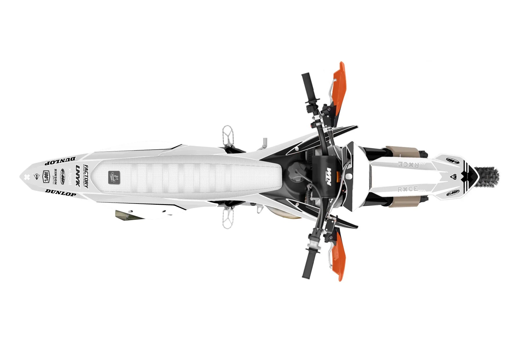 «Nifty» — готовый комплект графики серии Untucked для KTM Offroad Graphic Kit KTM XC 300 2019. В комплекте: графика на бак и боковые облицовки, крылья (переднее и заднее), передний щиток, номерные таблички, защита вилки. Материал: ПВХ-винил 80 мкр с холодной ламинацией 300 мкр, общая толщина 380 мкр; покрытие глянцевое или матовое на выбор. Устойчив к UV-излучению, воде, бензину и мойке высокого давления. Клей акриловый на сольвентной основе — постоянный, для гибких пластиков. На простых поверхностях монтируется без нагрева; для сложных изгибов рекомендуем фен. Этот пресет можно заказать как есть или взять за основу в конструкторе: поменять цвета, добавить стартовый номер и свой бренд. Производство — 3–5 рабочих дней, доставка по России СДЭКом или Почтой, по СНГ — курьерскими службами.