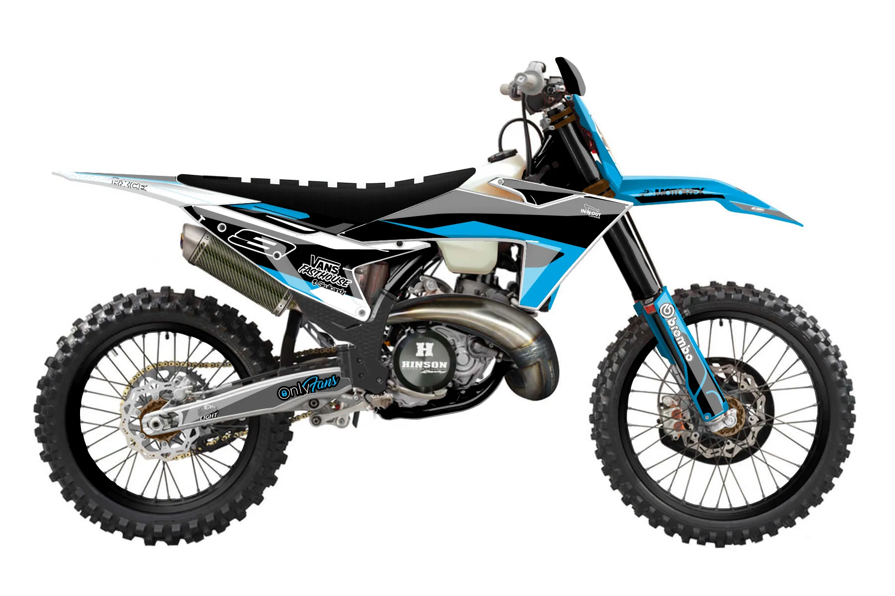 «300 xc final » — готовый комплект графики серии Flow для KTM Offroad Graphic Kit KTM XC 300 2023. В комплекте: графика на бак и боковые облицовки, крылья (переднее и заднее), передний щиток, номерные таблички, защита вилки. Материал: ПВХ-винил 80 мкр с холодной ламинацией 300 мкр, общая толщина 380 мкр; покрытие глянцевое или матовое на выбор. Устойчив к UV-излучению, воде, бензину и мойке высокого давления. Клей акриловый на сольвентной основе — постоянный, для гибких пластиков. На простых поверхностях монтируется без нагрева; для сложных изгибов рекомендуем фен. Этот пресет можно заказать как есть или взять за основу в конструкторе: поменять цвета, добавить стартовый номер и свой бренд. Производство — 3–5 рабочих дней, доставка по России СДЭКом или Почтой, по СНГ — курьерскими службами.