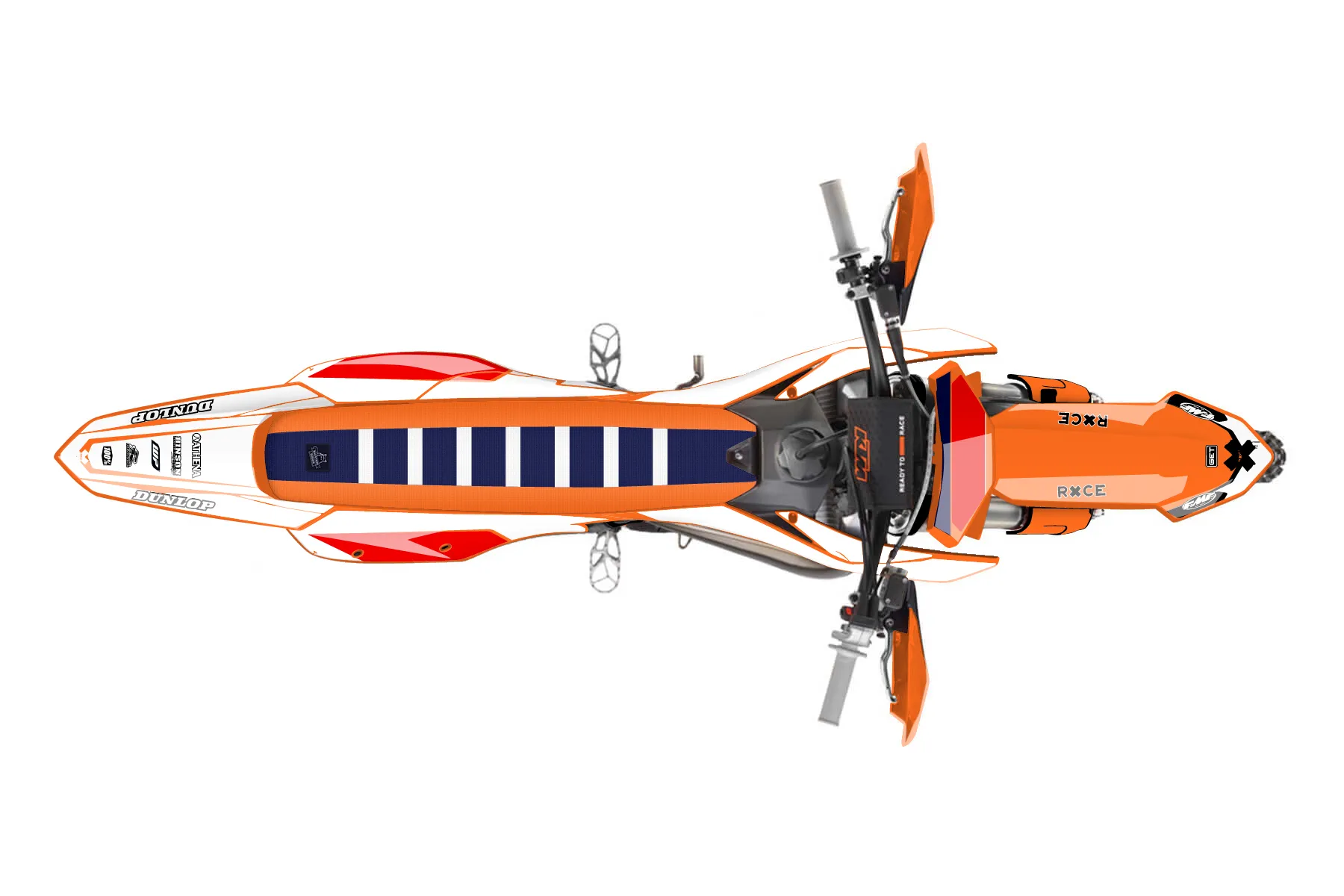 «ACC Baja Nevada » — готовый комплект графики серии Flow для KTM Offroad Graphic Kit KTM XC 300 2023. В комплекте: графика на бак и боковые облицовки, крылья (переднее и заднее), передний щиток, номерные таблички, защита вилки. Материал: ПВХ-винил 80 мкр с холодной ламинацией 300 мкр, общая толщина 380 мкр; покрытие глянцевое или матовое на выбор. Устойчив к UV-излучению, воде, бензину и мойке высокого давления. Клей акриловый на сольвентной основе — постоянный, для гибких пластиков. На простых поверхностях монтируется без нагрева; для сложных изгибов рекомендуем фен. Этот пресет можно заказать как есть или взять за основу в конструкторе: поменять цвета, добавить стартовый номер и свой бренд. Производство — 3–5 рабочих дней, доставка по России СДЭКом или Почтой, по СНГ — курьерскими службами.