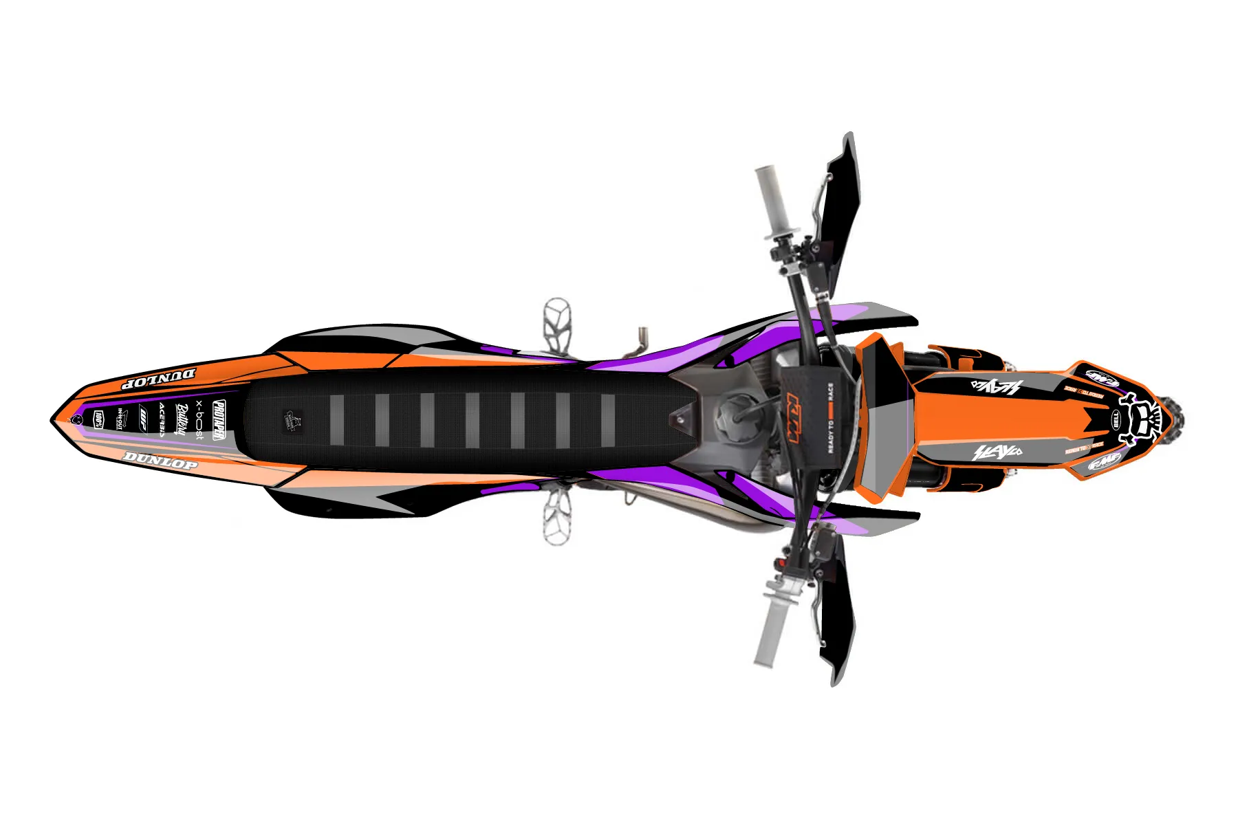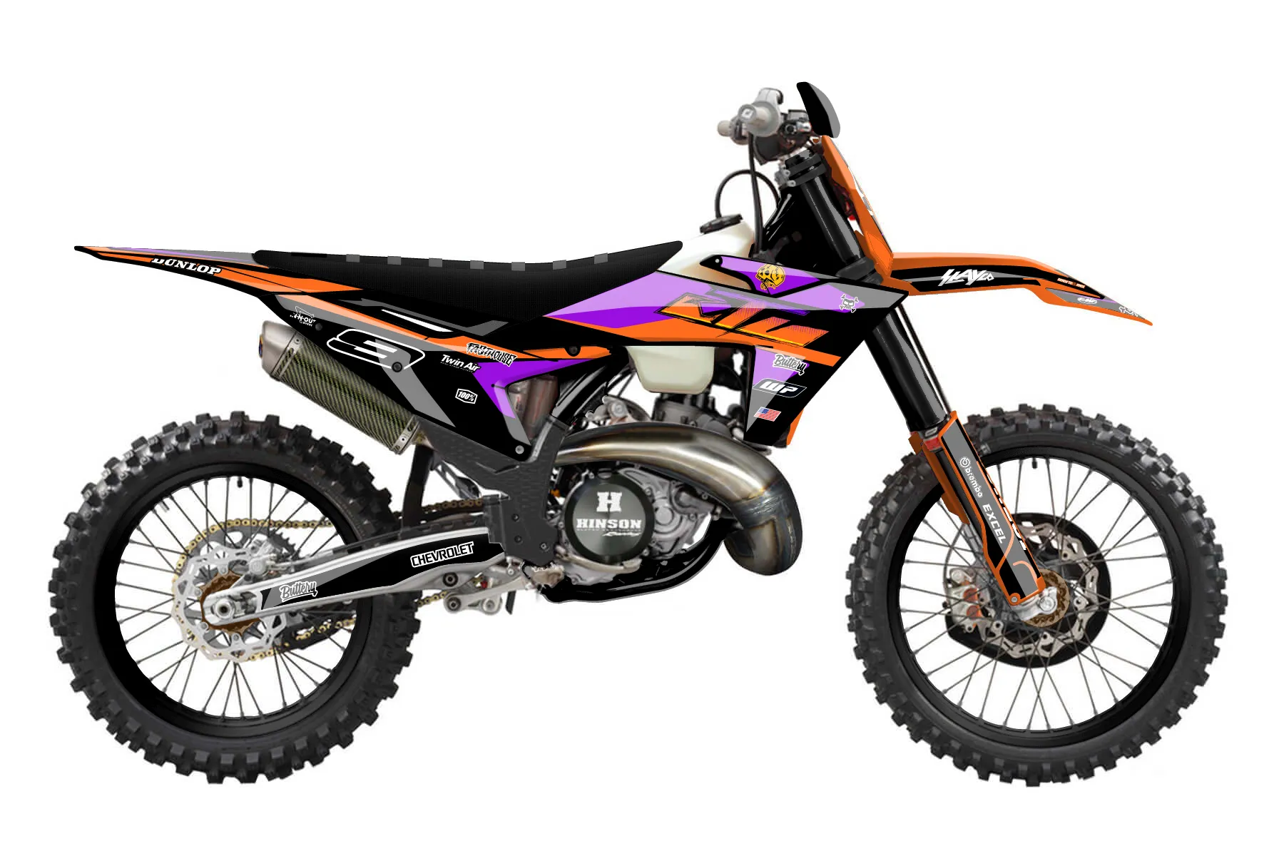 «Chevy NEW» — готовый комплект графики серии Flow для KTM Offroad Graphic Kit KTM XC 300 2023. В комплекте: графика на бак и боковые облицовки, крылья (переднее и заднее), передний щиток, номерные таблички, защита вилки. Материал: ПВХ-винил 80 мкр с холодной ламинацией 300 мкр, общая толщина 380 мкр; покрытие глянцевое или матовое на выбор. Устойчив к UV-излучению, воде, бензину и мойке высокого давления. Клей акриловый на сольвентной основе — постоянный, для гибких пластиков. На простых поверхностях монтируется без нагрева; для сложных изгибов рекомендуем фен. Этот пресет можно заказать как есть или взять за основу в конструкторе: поменять цвета, добавить стартовый номер и свой бренд. Производство — 3–5 рабочих дней, доставка по России СДЭКом или Почтой, по СНГ — курьерскими службами.