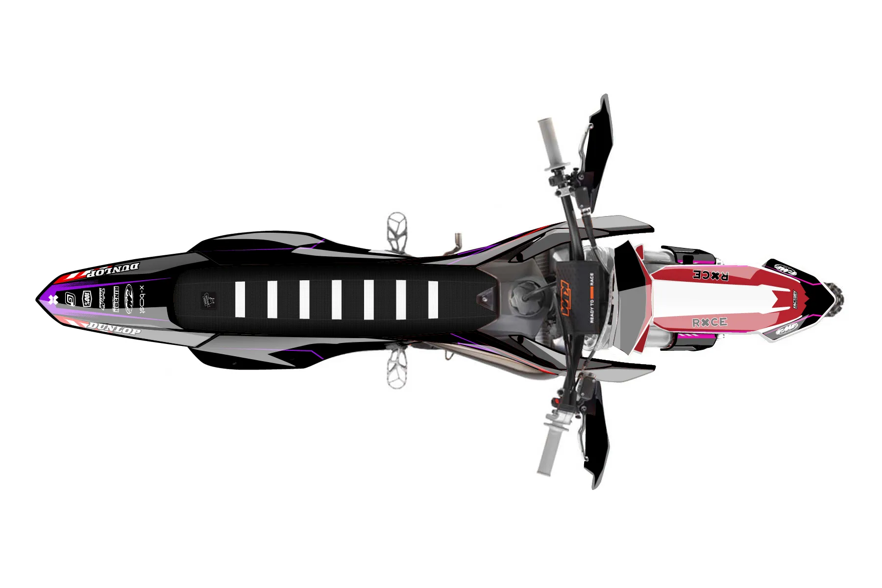 «tudor» — готовый комплект графики серии Maverick для KTM Offroad Graphic Kit KTM XC 300 2023. В комплекте: графика на бак и боковые облицовки, крылья (переднее и заднее), передний щиток, номерные таблички, защита вилки. Материал: ПВХ-винил 80 мкр с холодной ламинацией 300 мкр, общая толщина 380 мкр; покрытие глянцевое или матовое на выбор. Устойчив к UV-излучению, воде, бензину и мойке высокого давления. Клей акриловый на сольвентной основе — постоянный, для гибких пластиков. На простых поверхностях монтируется без нагрева; для сложных изгибов рекомендуем фен. Этот пресет можно заказать как есть или взять за основу в конструкторе: поменять цвета, добавить стартовый номер и свой бренд. Производство — 3–5 рабочих дней, доставка по России СДЭКом или Почтой, по СНГ — курьерскими службами.