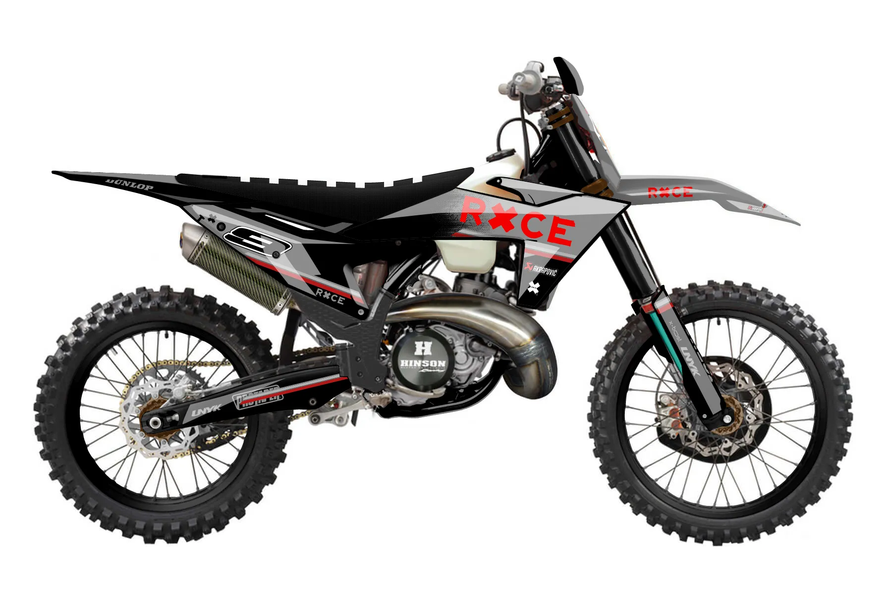 «Vital» — готовый комплект графики серии Maverick для KTM Offroad Graphic Kit KTM XC 300 2023. В комплекте: графика на бак и боковые облицовки, крылья (переднее и заднее), передний щиток, номерные таблички, защита вилки. Материал: ПВХ-винил 80 мкр с холодной ламинацией 300 мкр, общая толщина 380 мкр; покрытие глянцевое или матовое на выбор. Устойчив к UV-излучению, воде, бензину и мойке высокого давления. Клей акриловый на сольвентной основе — постоянный, для гибких пластиков. На простых поверхностях монтируется без нагрева; для сложных изгибов рекомендуем фен. Этот пресет можно заказать как есть или взять за основу в конструкторе: поменять цвета, добавить стартовый номер и свой бренд. Производство — 3–5 рабочих дней, доставка по России СДЭКом или Почтой, по СНГ — курьерскими службами.