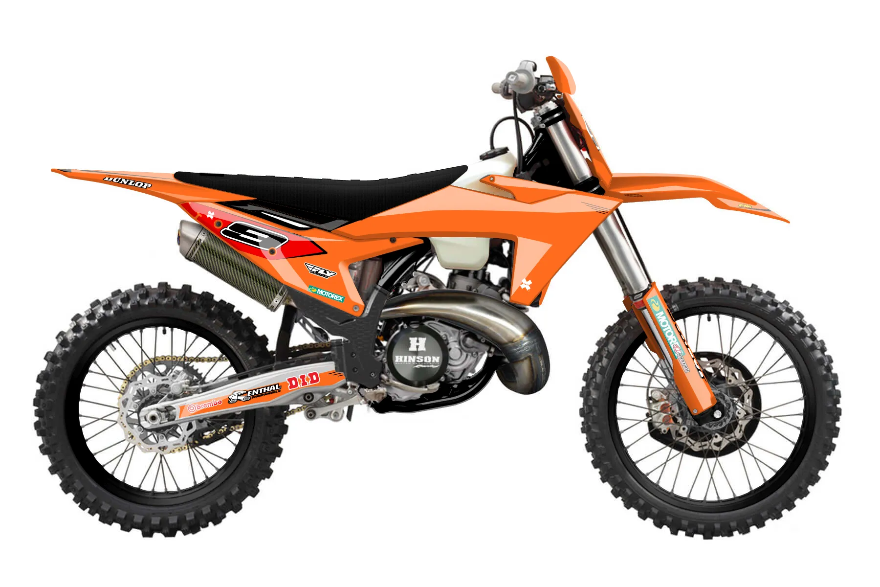 «2023 300» — готовый комплект графики серии Staple для KTM Offroad Graphic Kit KTM XC 300 2023. В комплекте: графика на бак и боковые облицовки, крылья (переднее и заднее), передний щиток, номерные таблички, защита вилки. Материал: ПВХ-винил 80 мкр с холодной ламинацией 300 мкр, общая толщина 380 мкр; покрытие глянцевое или матовое на выбор. Устойчив к UV-излучению, воде, бензину и мойке высокого давления. Клей акриловый на сольвентной основе — постоянный, для гибких пластиков. На простых поверхностях монтируется без нагрева; для сложных изгибов рекомендуем фен. Этот пресет можно заказать как есть или взять за основу в конструкторе: поменять цвета, добавить стартовый номер и свой бренд. Производство — 3–5 рабочих дней, доставка по России СДЭКом или Почтой, по СНГ — курьерскими службами.